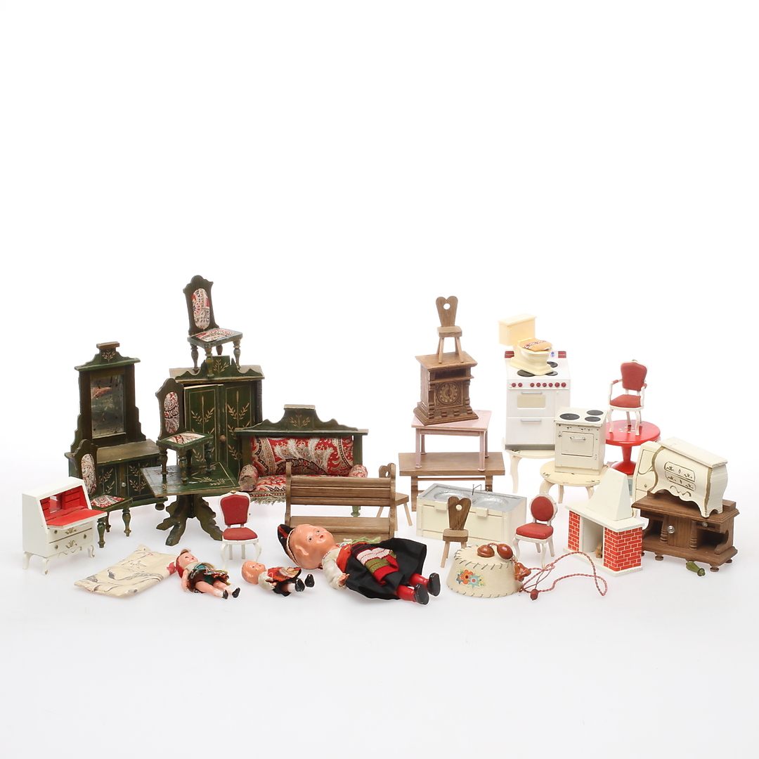 176684. DOCKMÖBLER, ca 30 delar, samt DOCKOR 3 st.