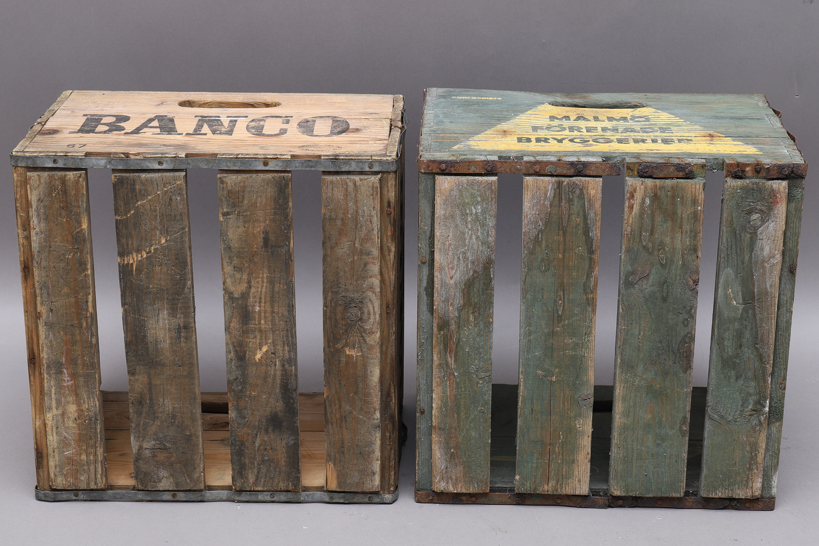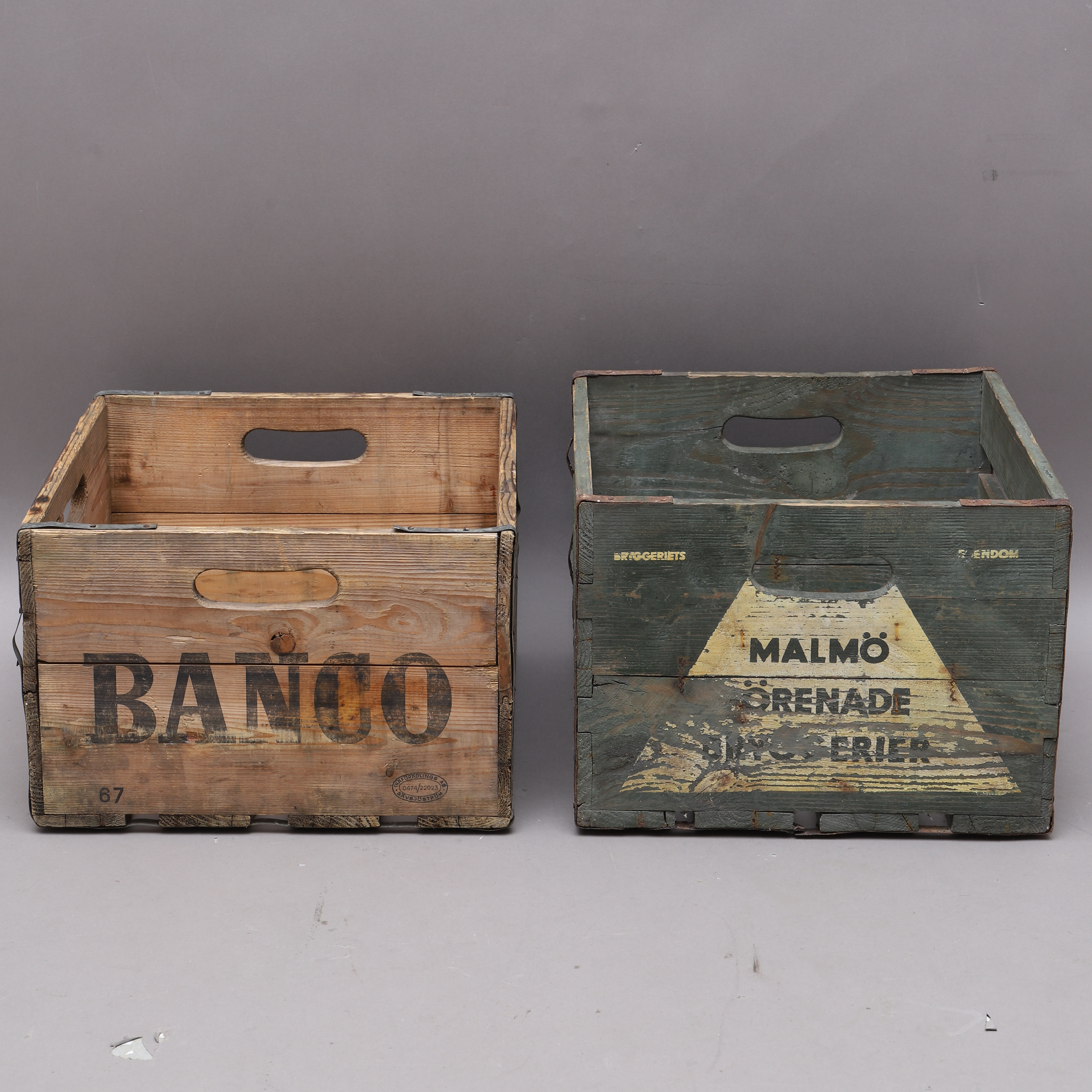 1771880. ÖLBACKAR, 2 st, trä, Banco bryggeri & Malmö förenade bryggerier.