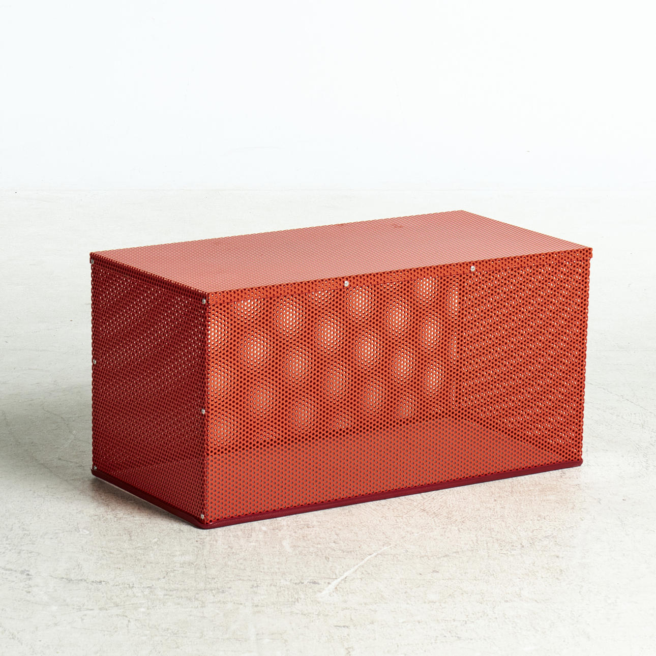 1775716. BÄNK, perforerad plåt, lackerad i orange.