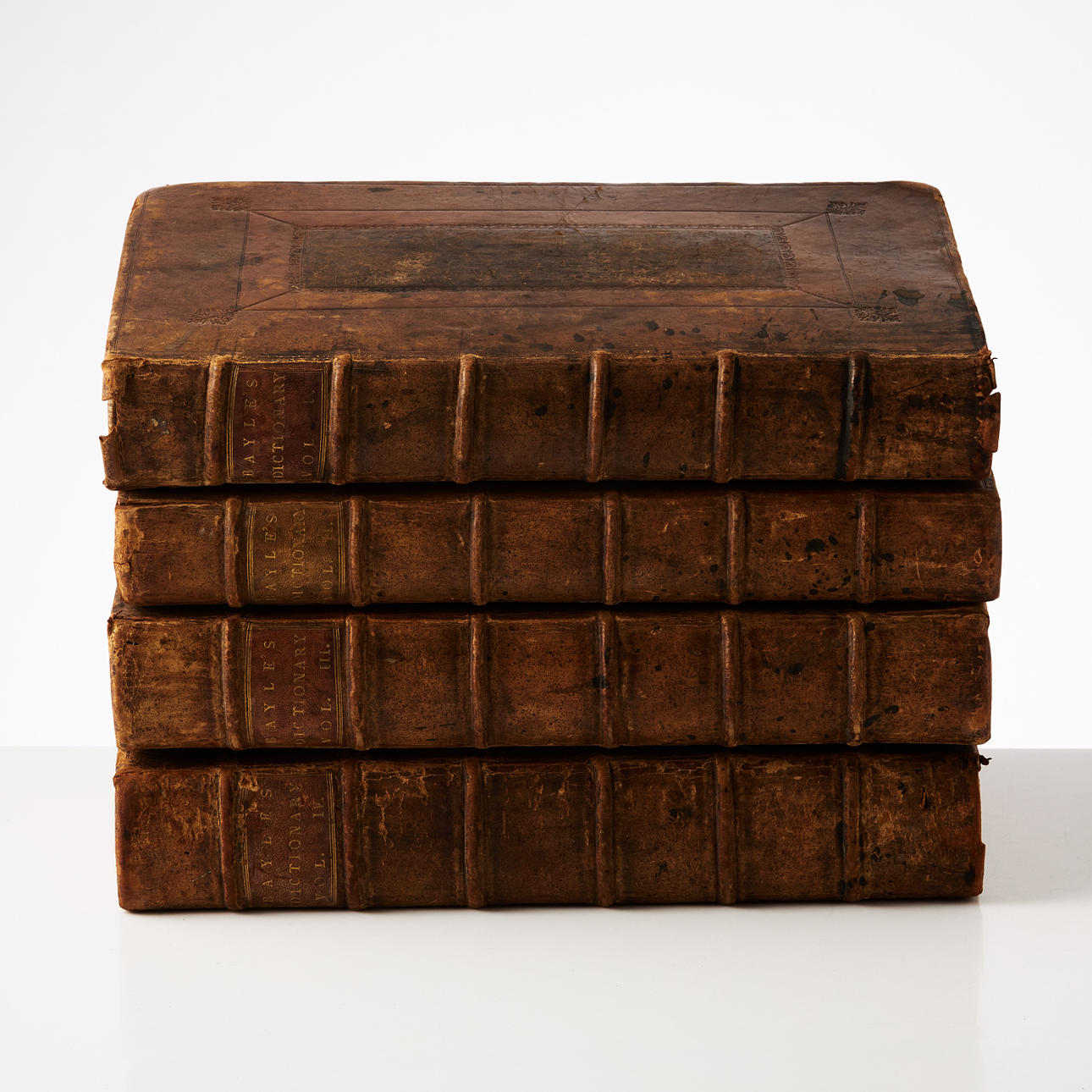 BAYLE, PIERRE. (4). An historical and critical Dictionary. Translated into English, with many additions and corrections, made by the author himself, that are not in the French edtions. I-IV. London, C. Harper, D. Brown a.o. 1710.