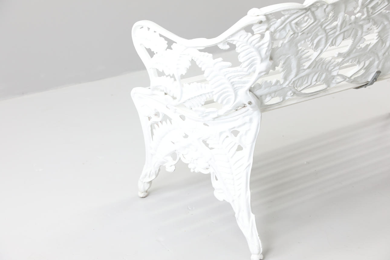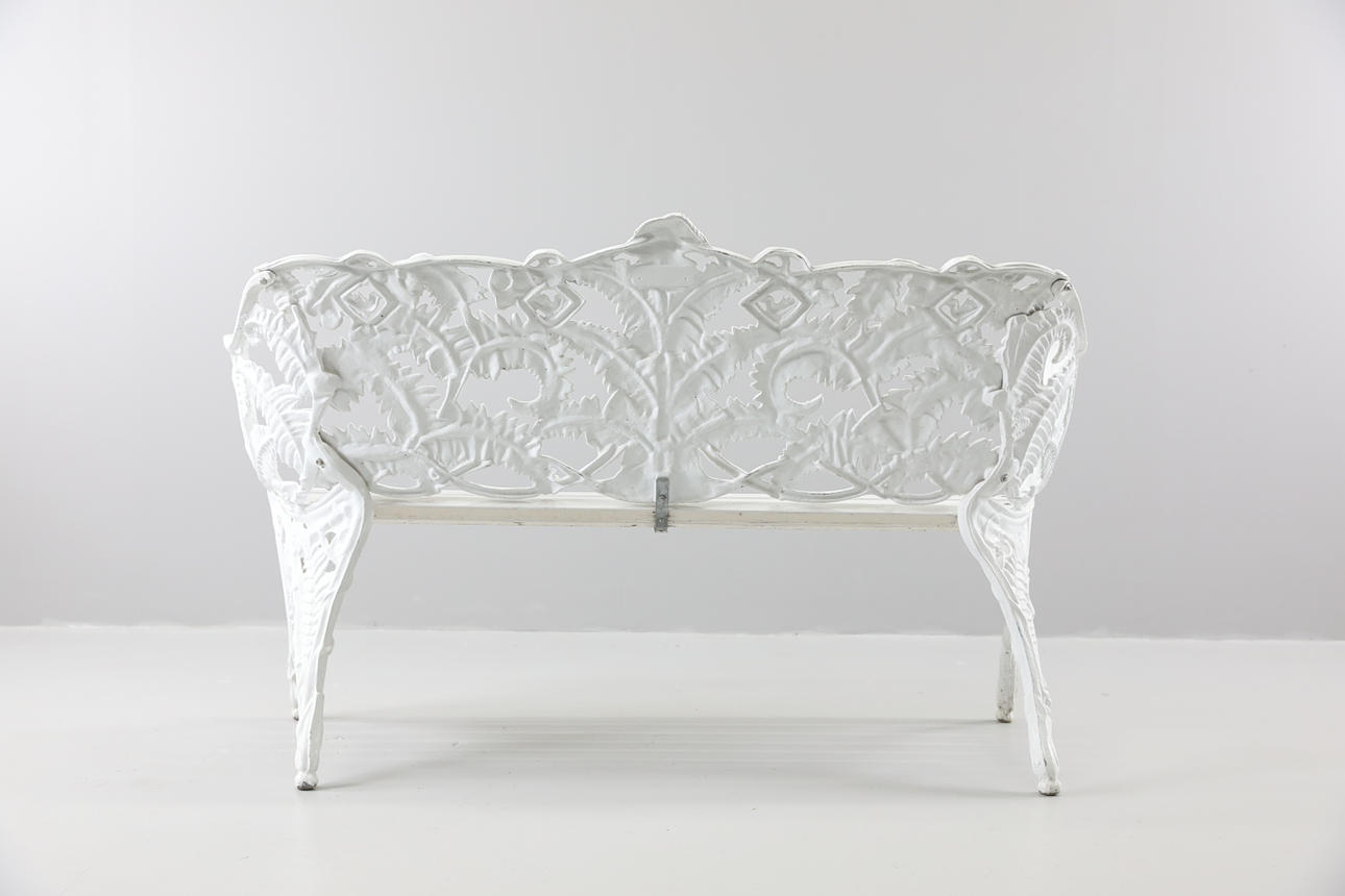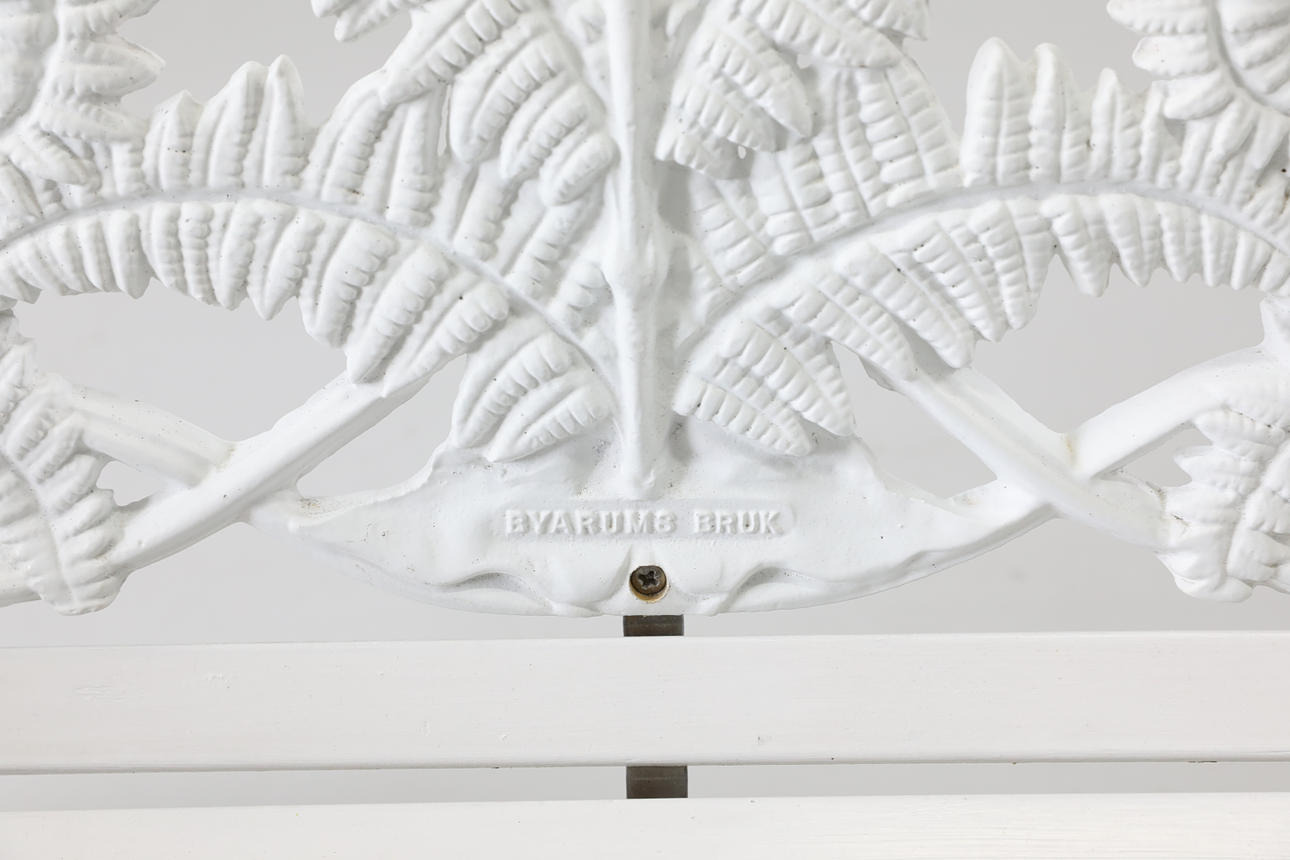 Stomme i gjutjärn. Vitlackerat trä. Längd ca 142 cm Höjd ca 87 cm Djup ca 54 cm.