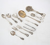 Sockerströare, tänger, skedar och gafflar.