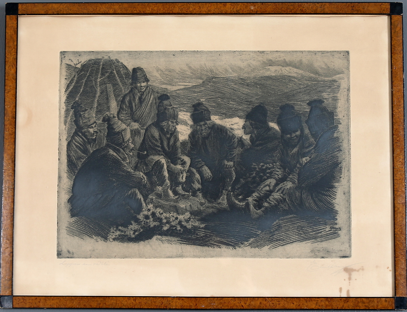 178140. EMIL ÅBERG. Etsning, "Lappar som rådslår", signerad.