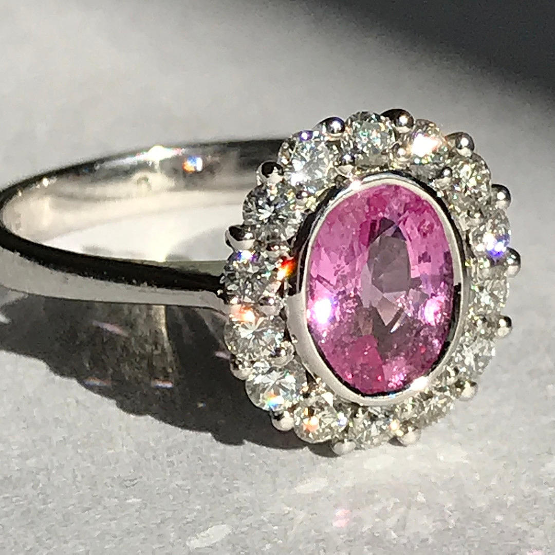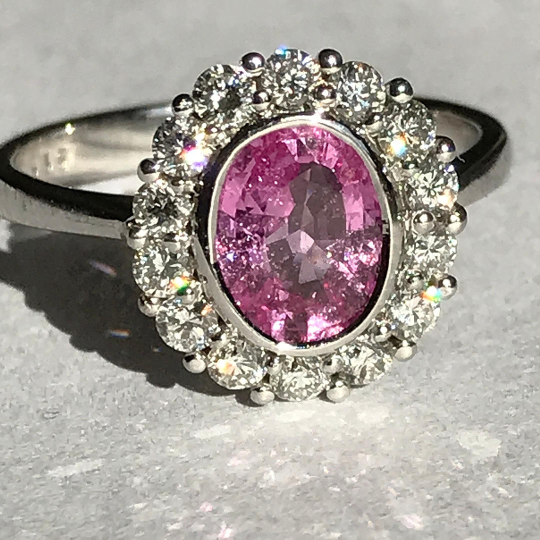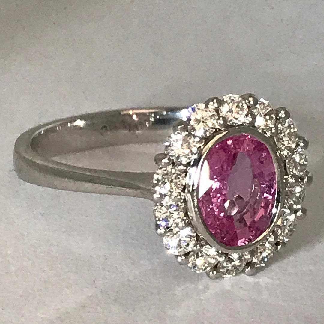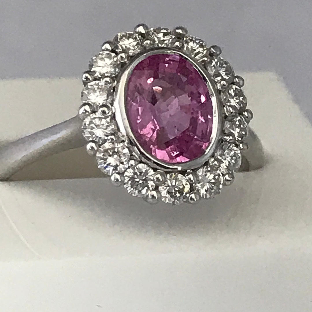 RING, 18k vitguld oval rosa safir och diamanter.
