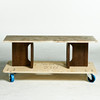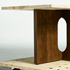 Samtida, skiva av sandfärgad Kunis Braccia sten, stomme av mörk betsad ek och stål, format ca höjd 38 cm, 45 x 120 cm.