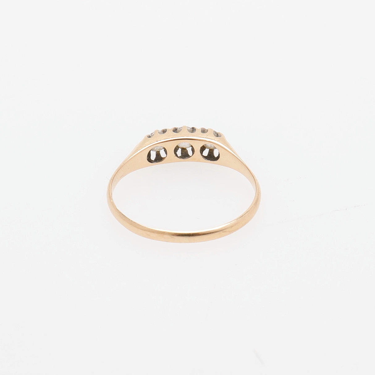 18k guld med tre vita stenar. stämplad Stockholm 1940, storlek 17 4/4, vikt 1,8 gram.