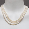 Odlade sötvattenspärlor, tre-radigt, snurrat, med pärlor på ca 0,6 cm diameter. Längd ca 50 cm.