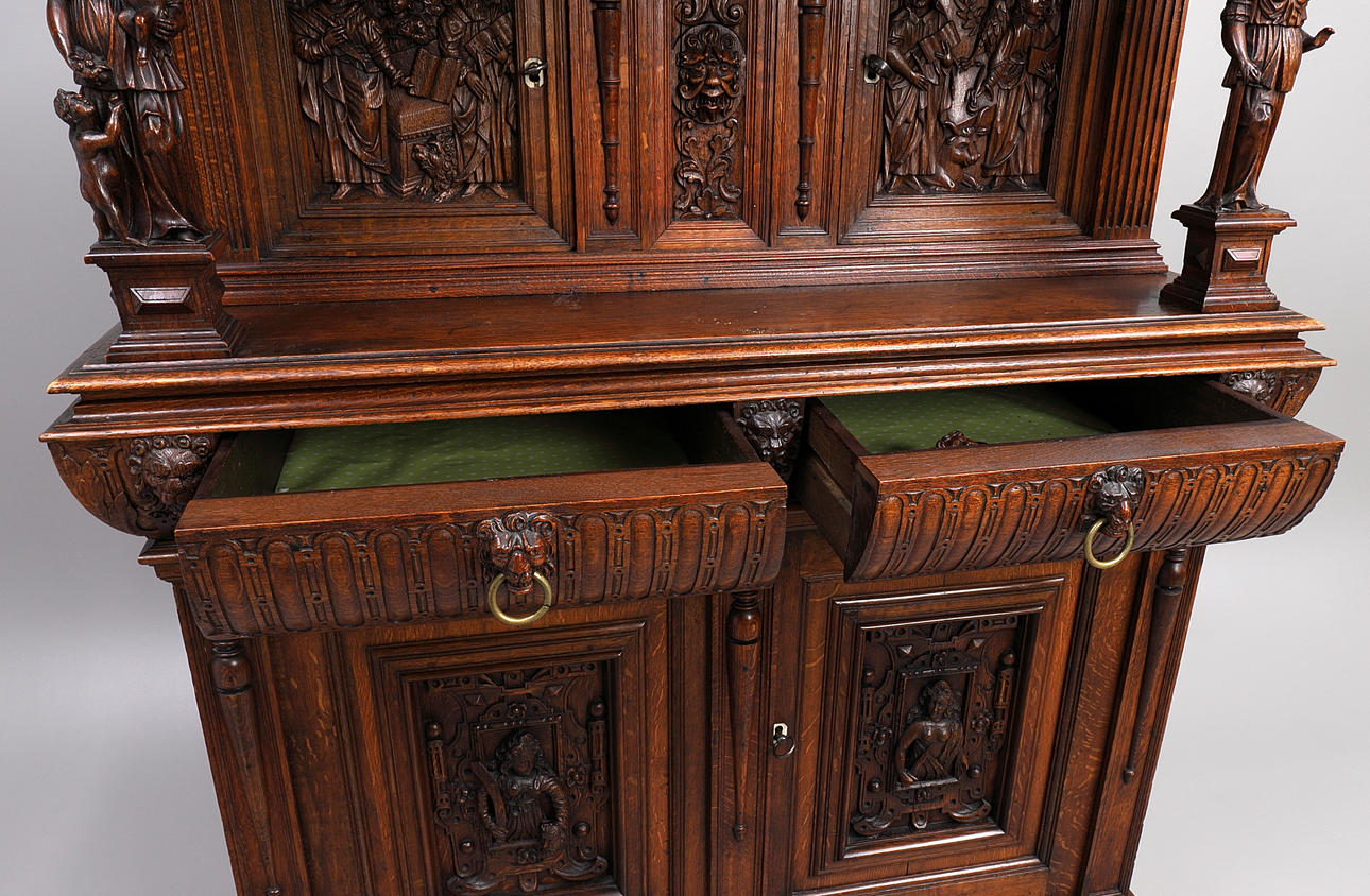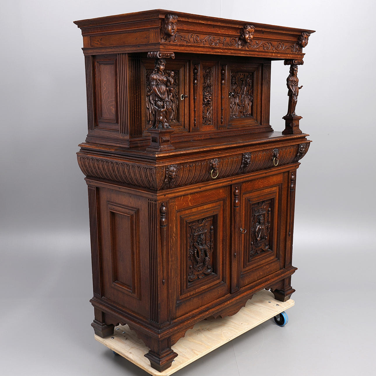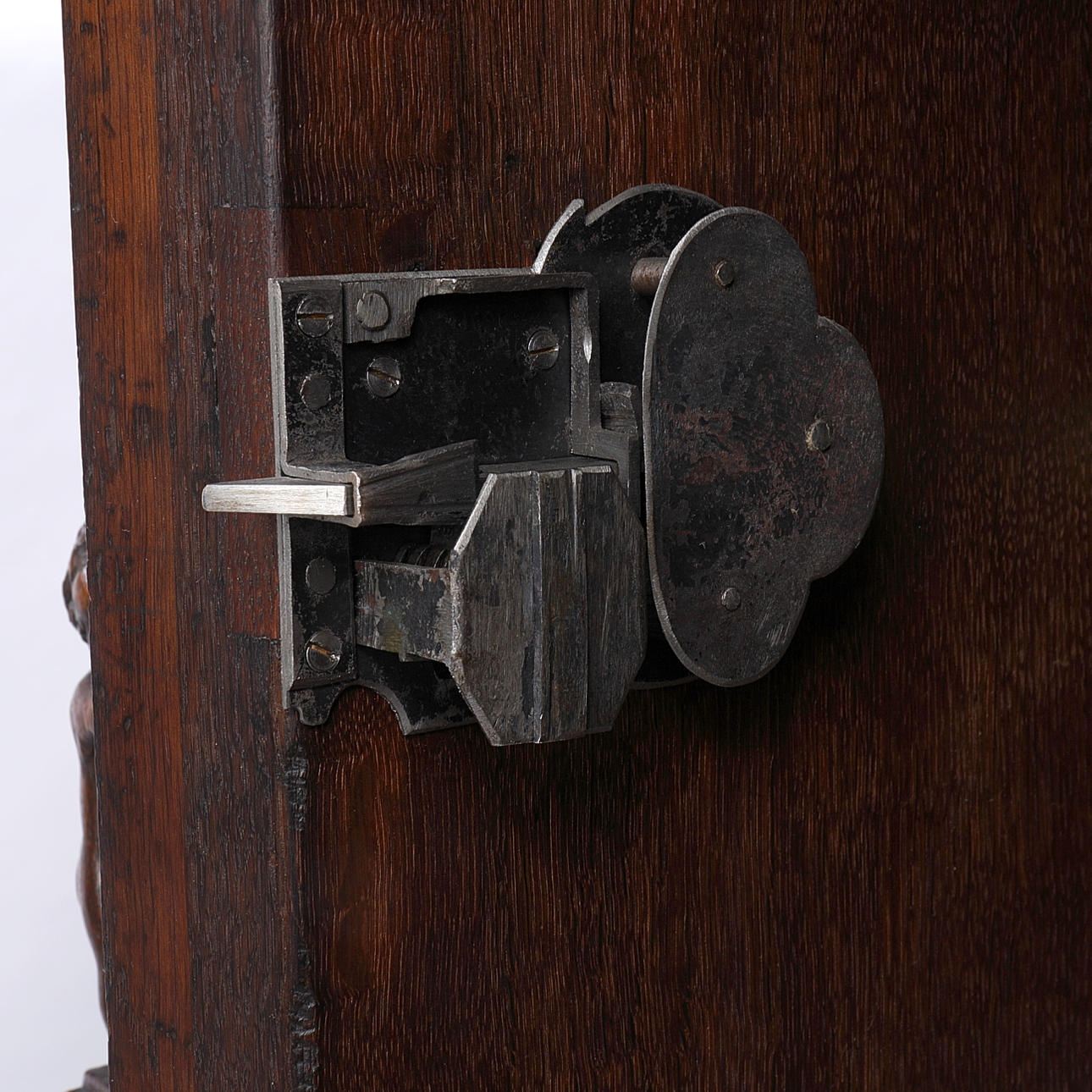 Slitage, spricka i front, lossnad dekor medföljer, kantsida med övre listavslag.