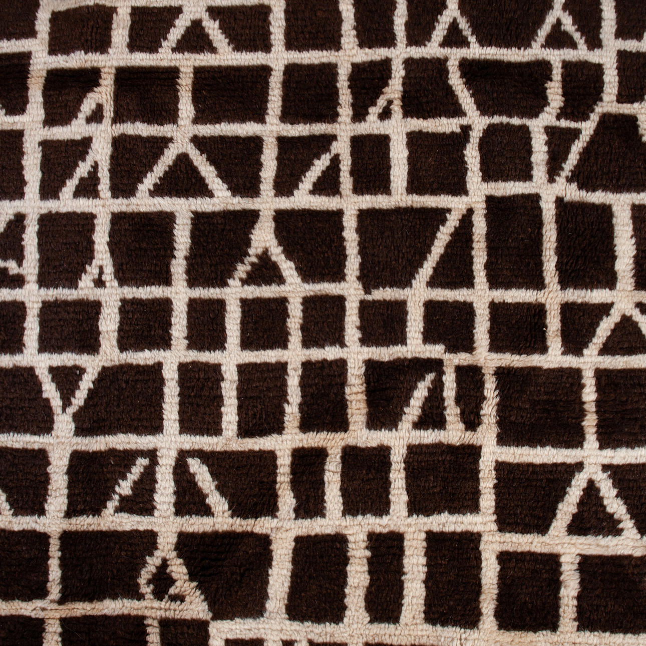 Tuftad ull, i brunt och nyanser av vitt.