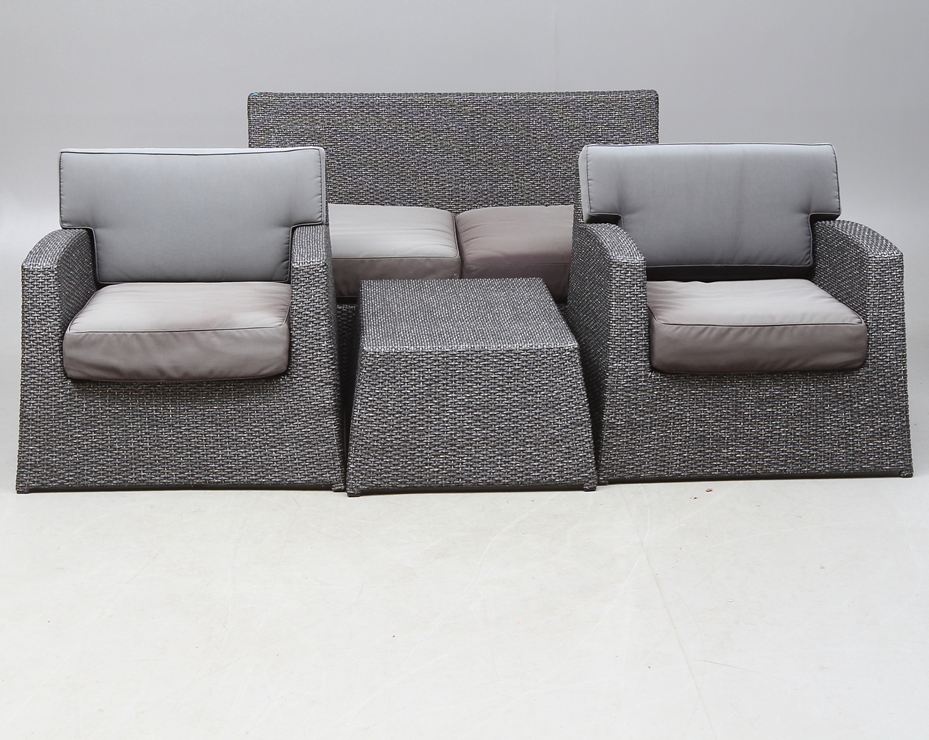 179629. UTEMÖBLER, 4 delar, flätad plast, 2000-tal.