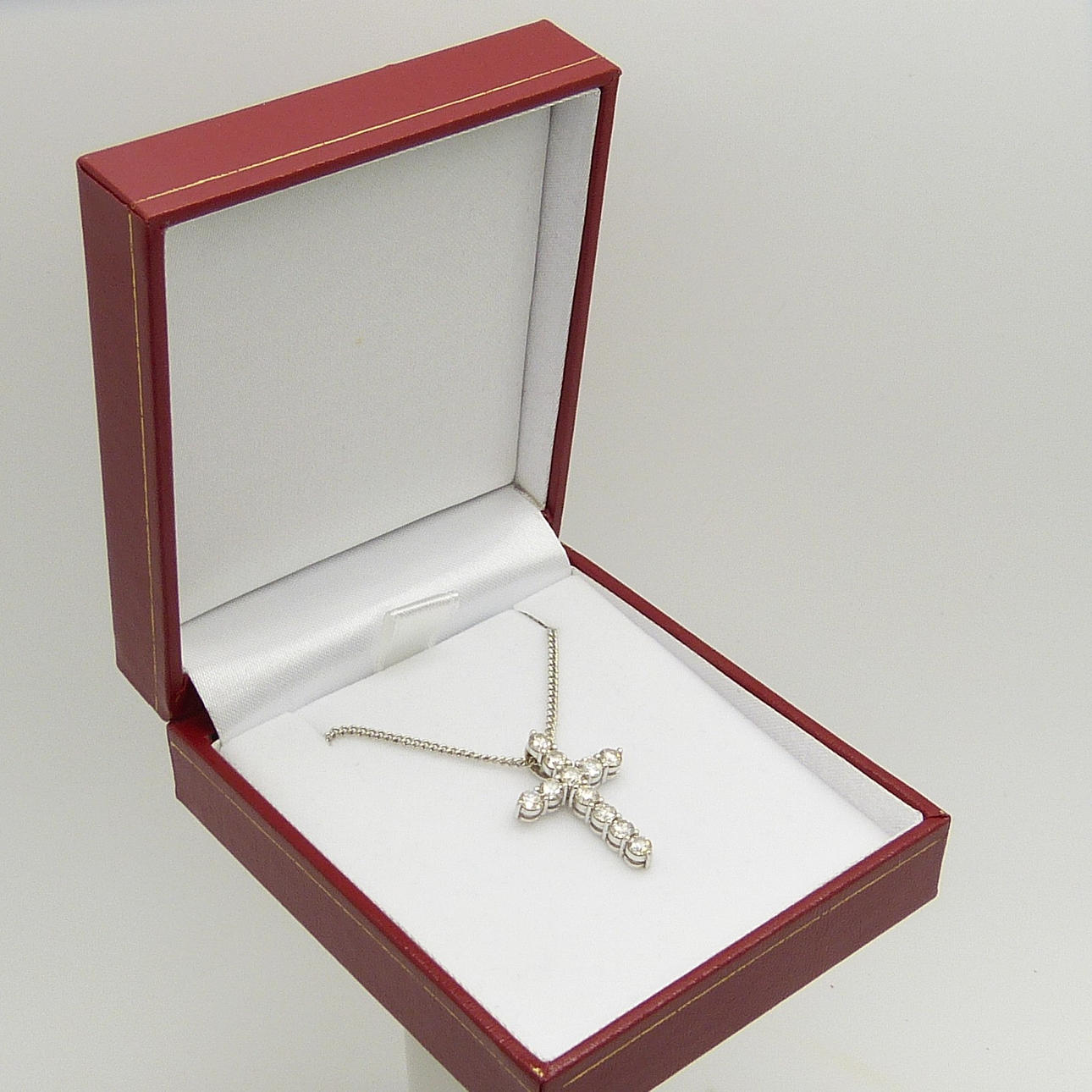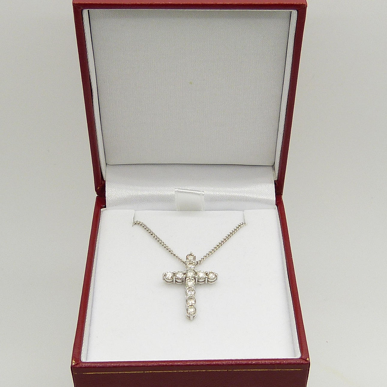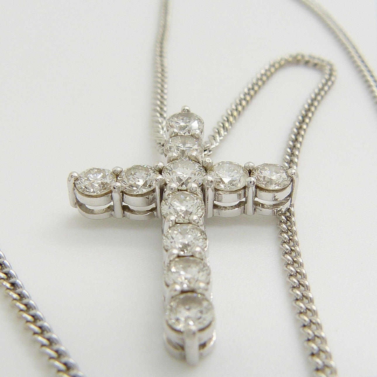 Korset är set med 11 rund briljantslipad diamant med en sammanlagd karatvikt på 1.50 ct, ca.