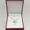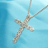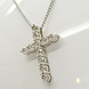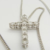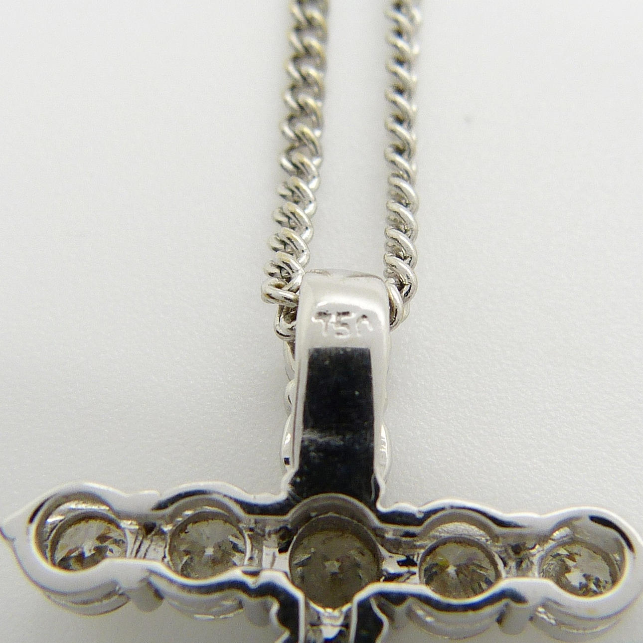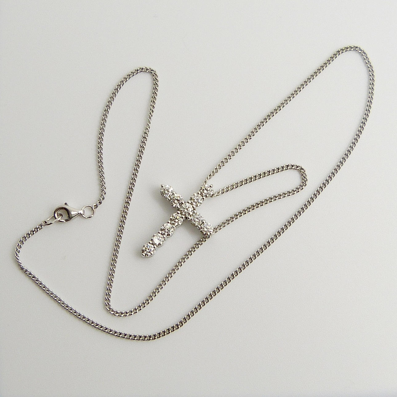 Diamanterna är en H-I-färg ca, och en SI-I-klarhet ca.. Korset hänger på en kedja försedd med ett klolås.