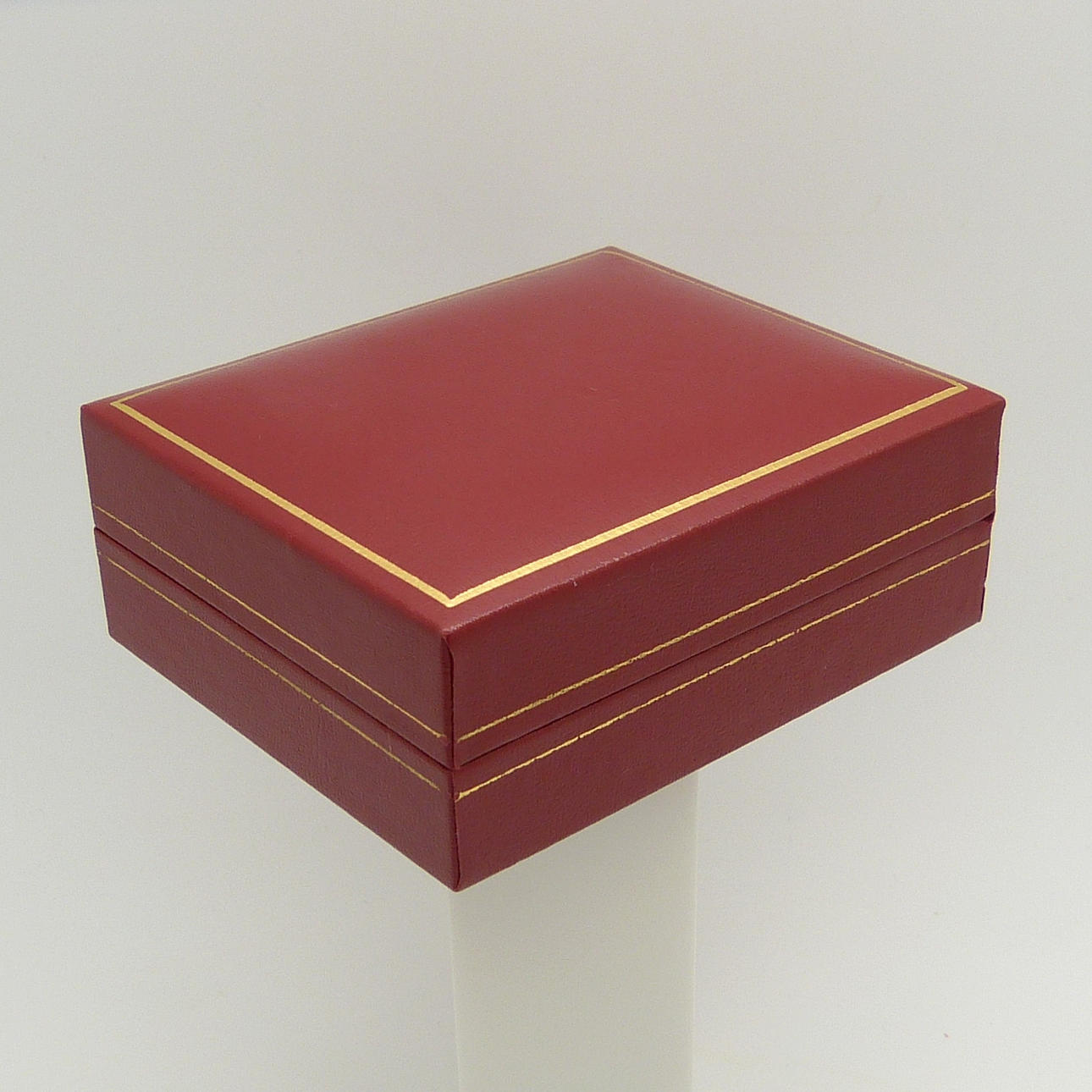 Detta halsband presenteras i en röd läderlåda med vit inredning.