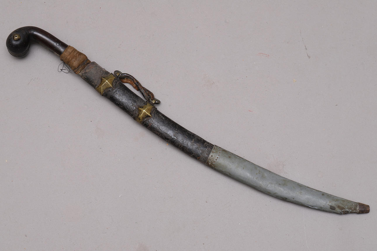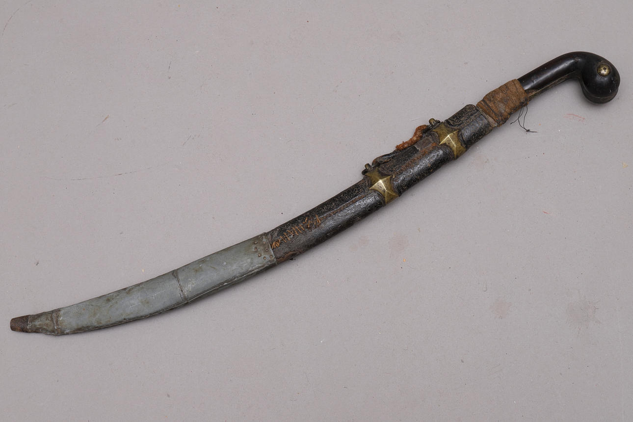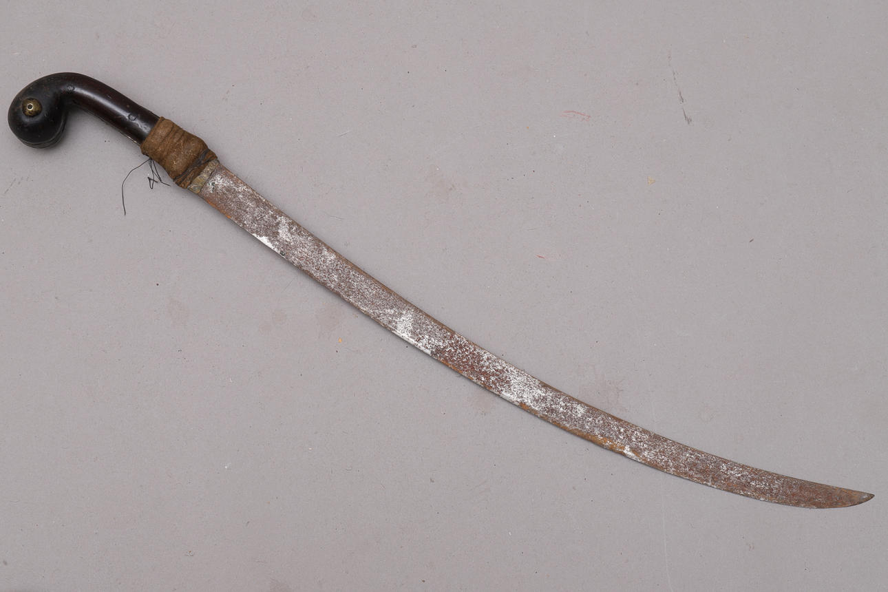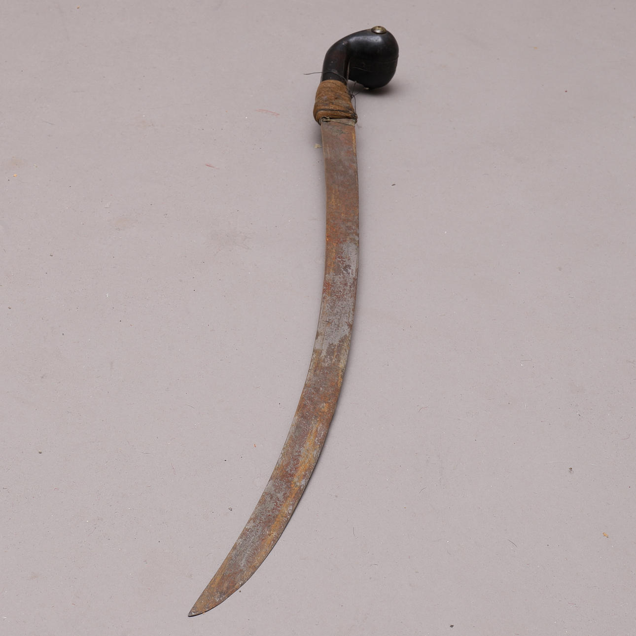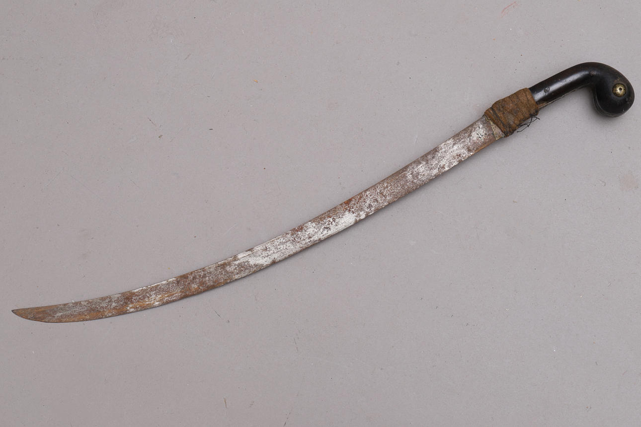 Rostanlupen klinga. Skador på trähandtag. Större ålders- och bruksslitage.