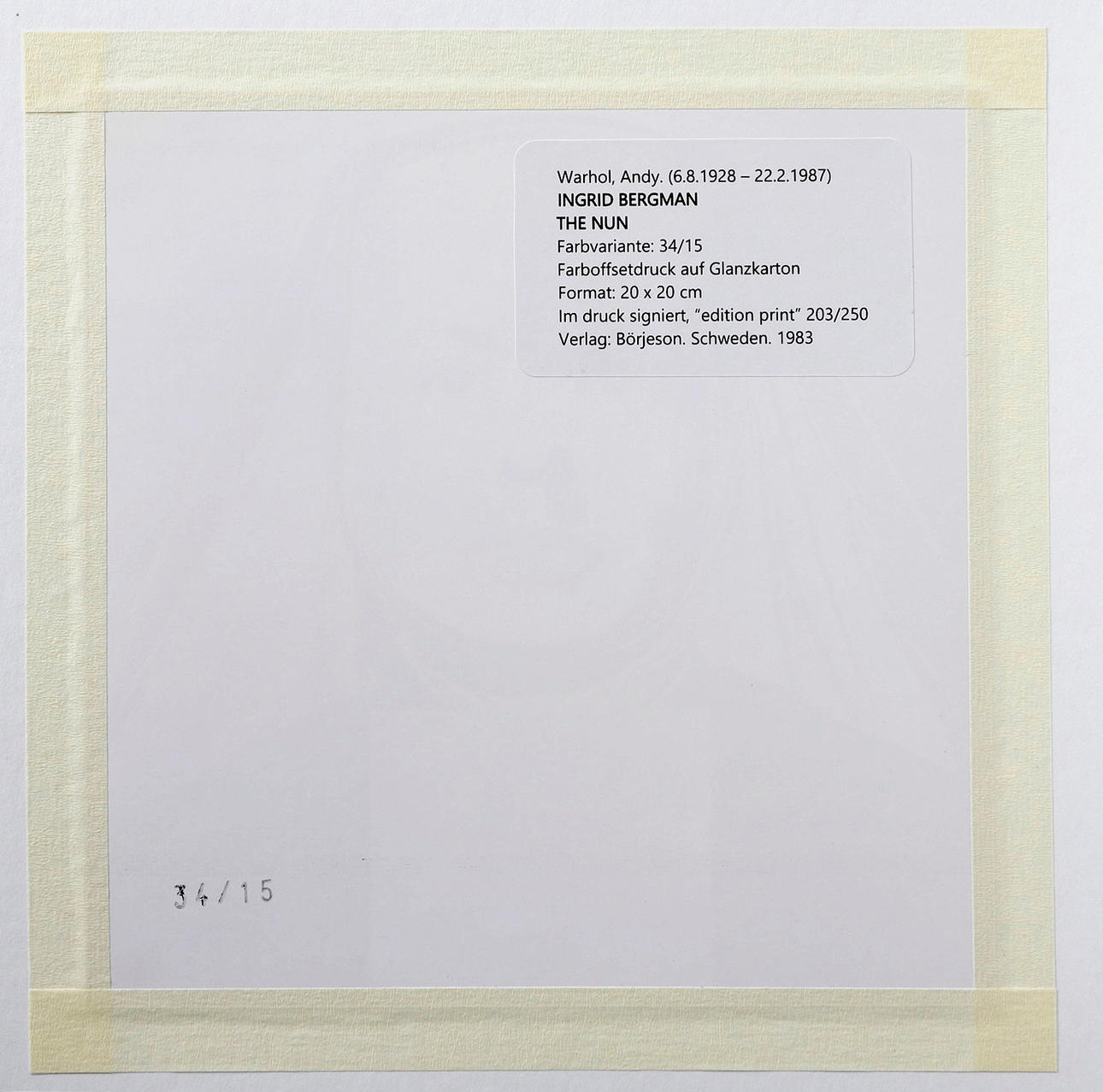 1803662. ANDY WARHOL. EFTER. ”Ingrid Bergman. Nunnan”.