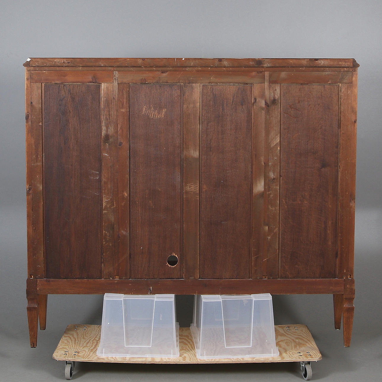 Bruksslitage. Repor. Märken. Hål för kablar nedre delen av mittenhyllan.