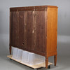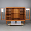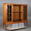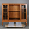 Stomme av ek. Två vitrindörrar med bakomliggande hyllplan. Längd 157, bredd 34, höjd 139 cm.