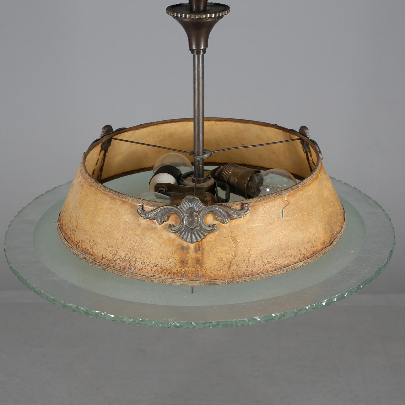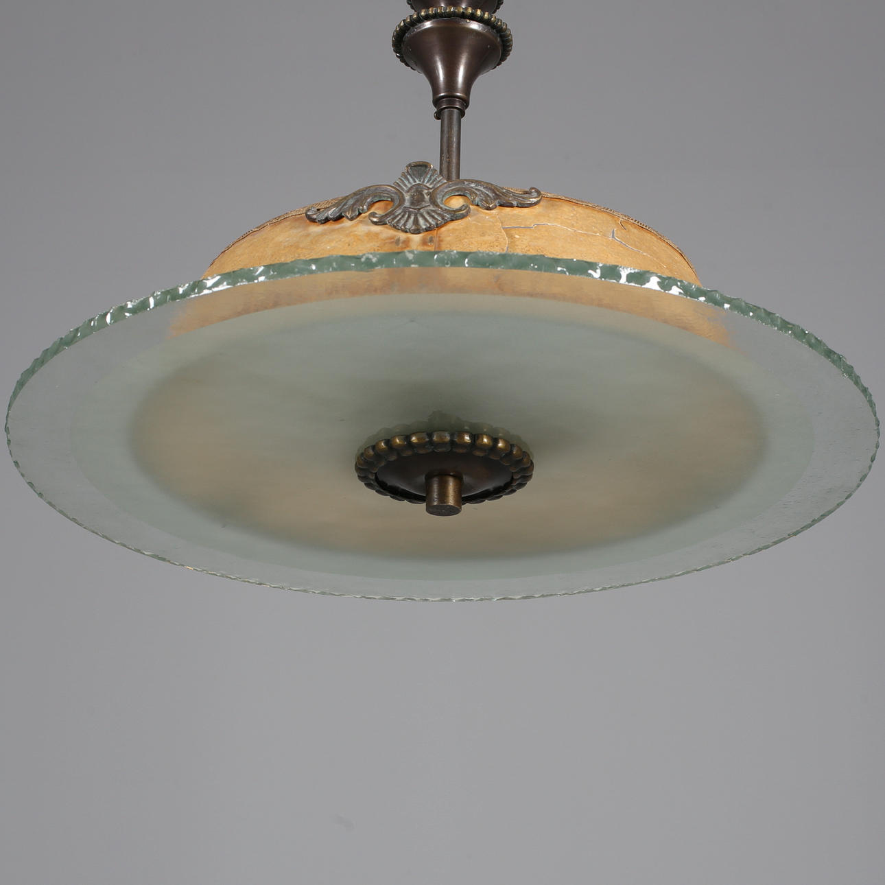 TAKPLAFOND, brons samt råglasskiva, Art Deco.