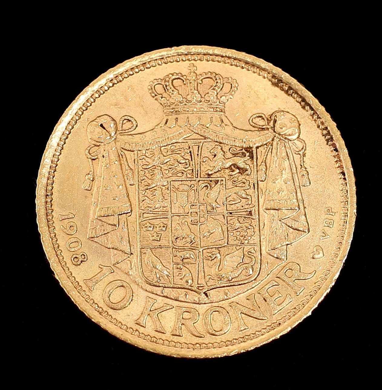 GULDMYNT, 10 kroner, Frederik VIII, Danmark, 1908.