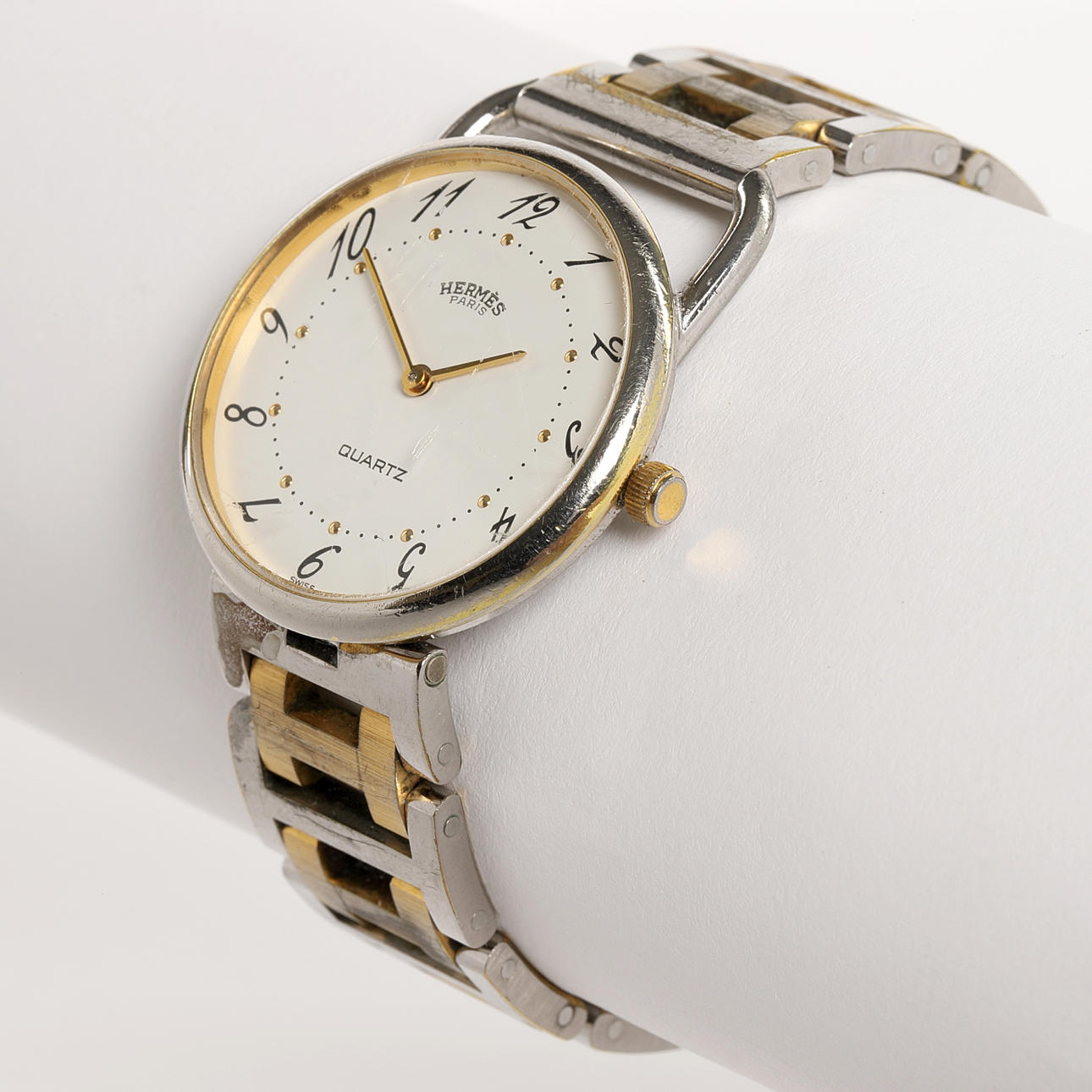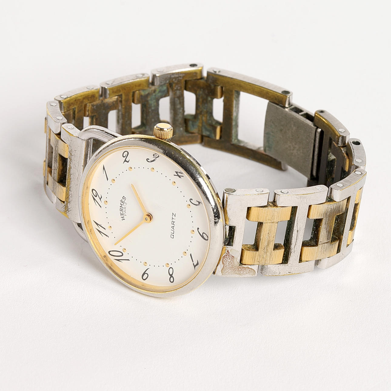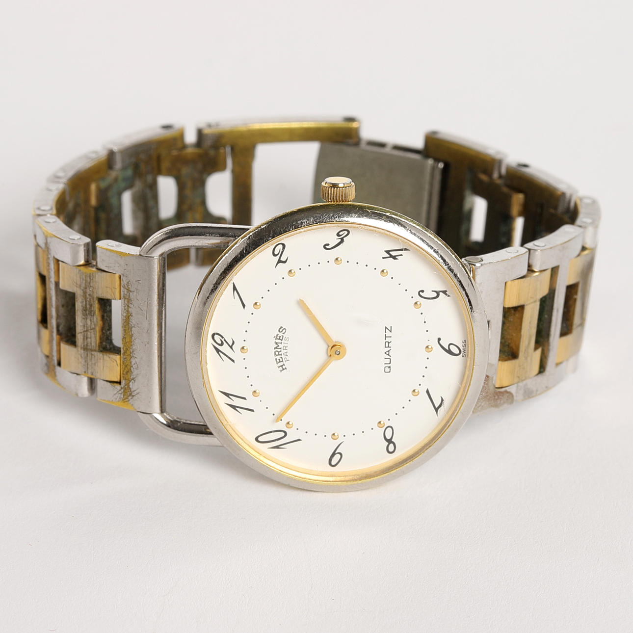 Slitage, klockans glas med repor. Fungerade vid katalogiseringstillfället. Ingen funktionsgaranti lämnas.