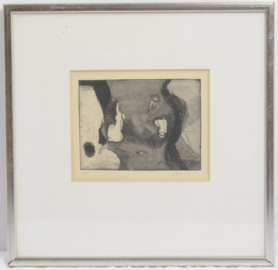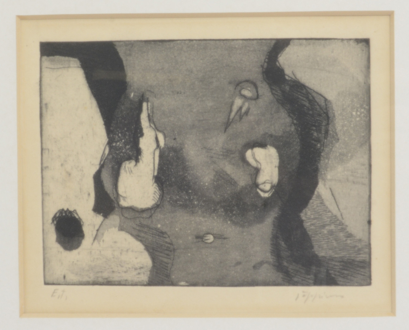 1816736. ROBERT JÄPPINEN. Grå flod med två öar etsning.