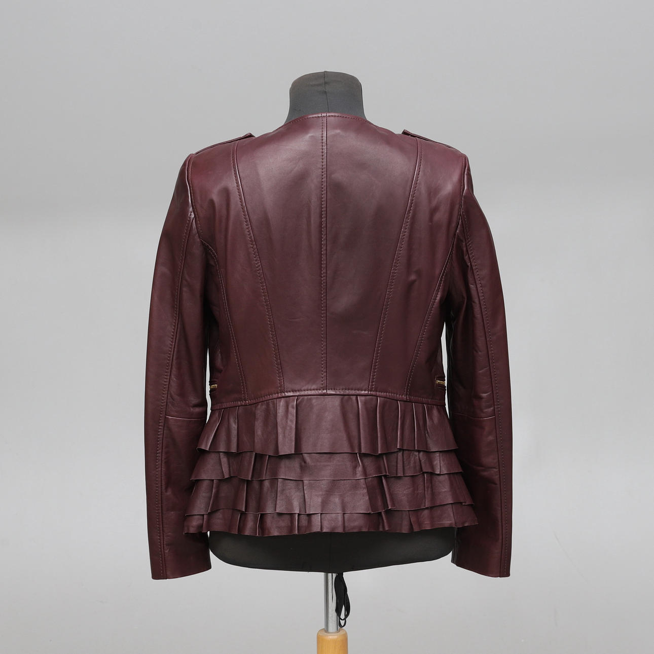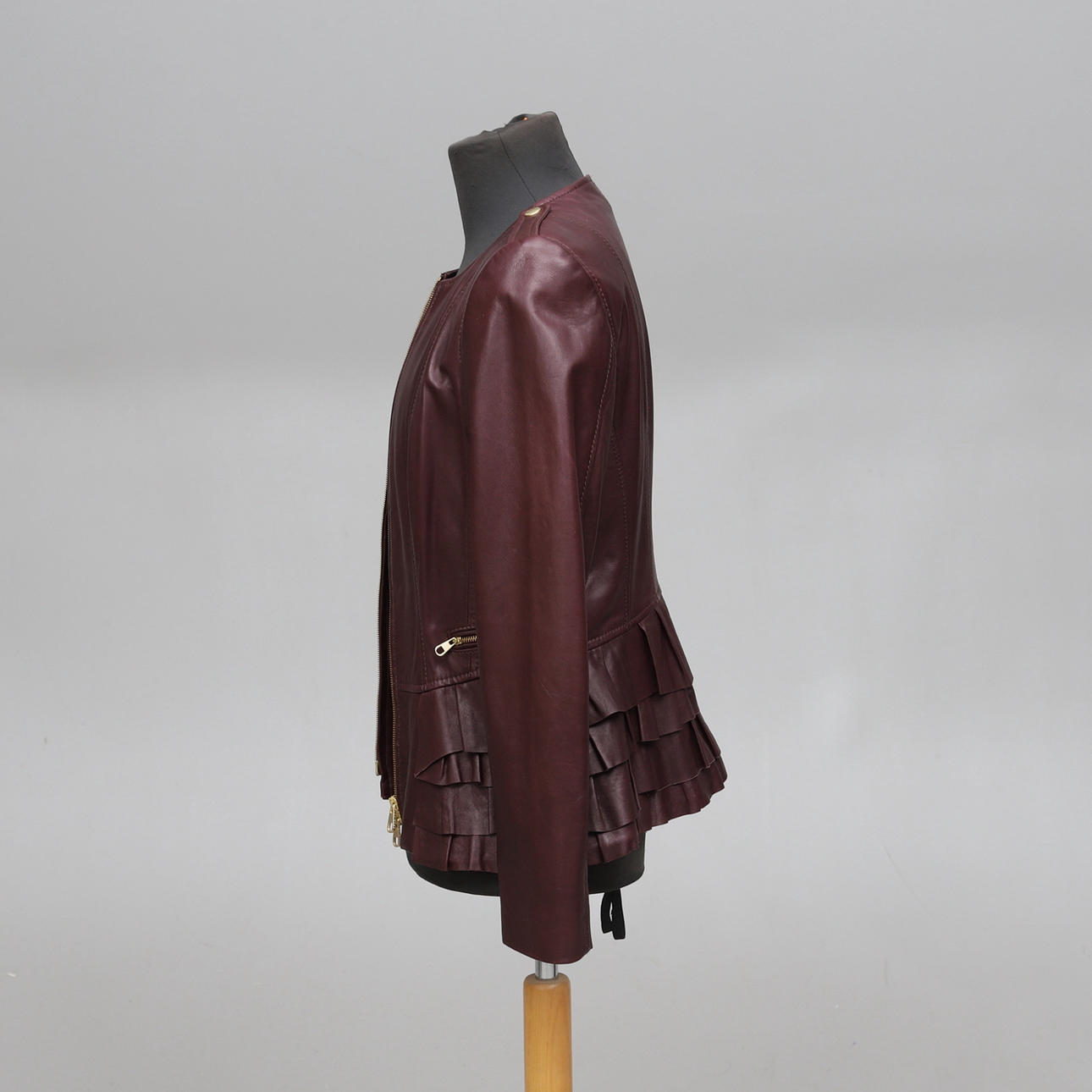 Smärre bruksslitage. Liten skada på foder. Skada på jacka under volang.