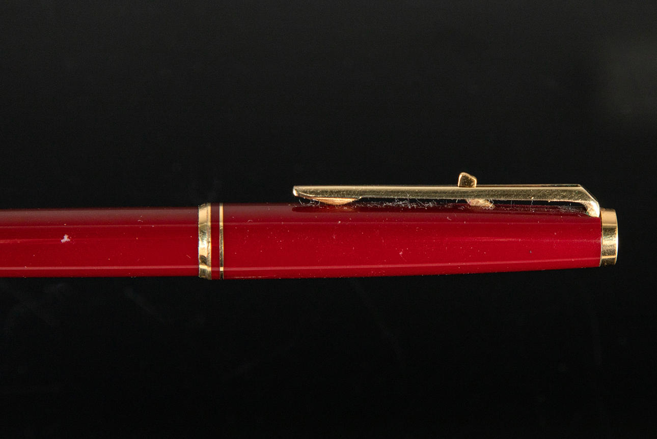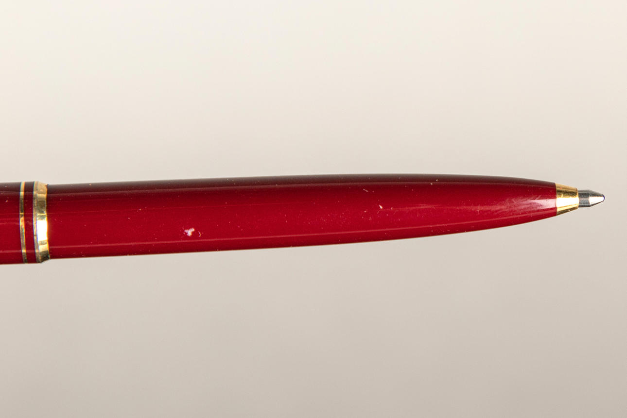 Knovolut bestående av, 1 reservoarpenna med guldspets och 3 kulspetspennor.