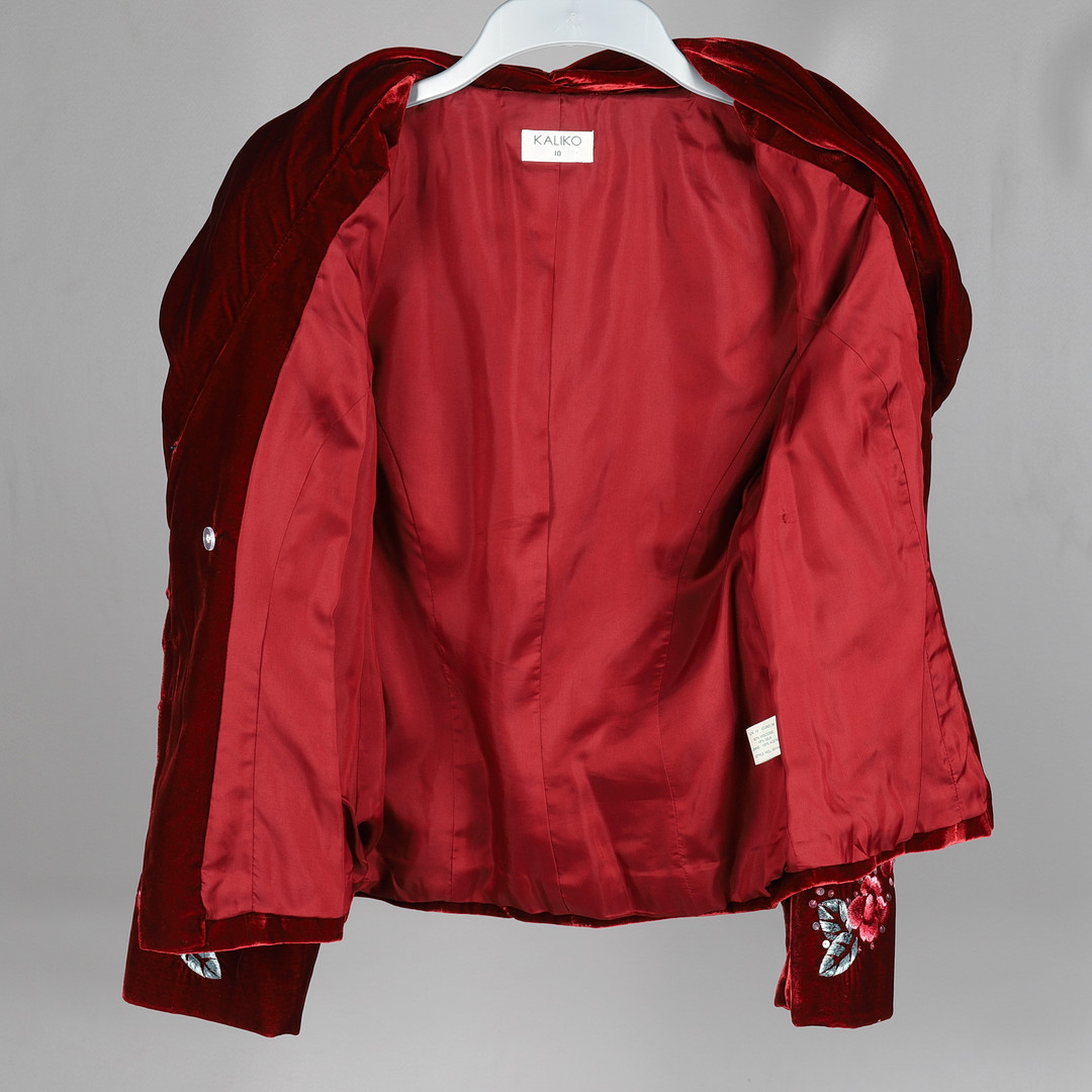 1823069. JACKA, broderad röd sammet, Kaliko.