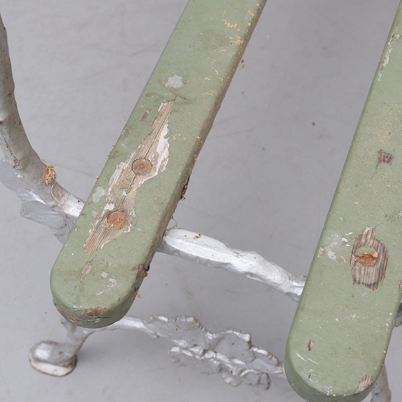 Slitage. Rostangrepp. Färgbortfall. Torrsprickor. Ett ben av.