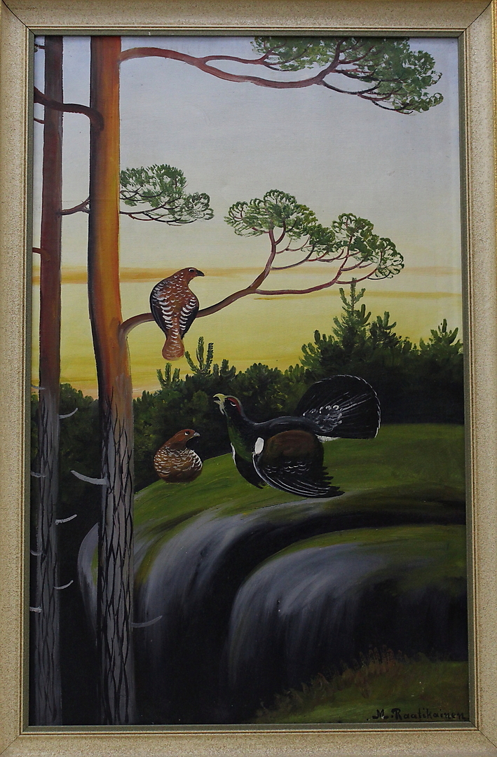 182776. MIKAEL RAATIKAINEN. olja på duk, tjäderspel, signerad.