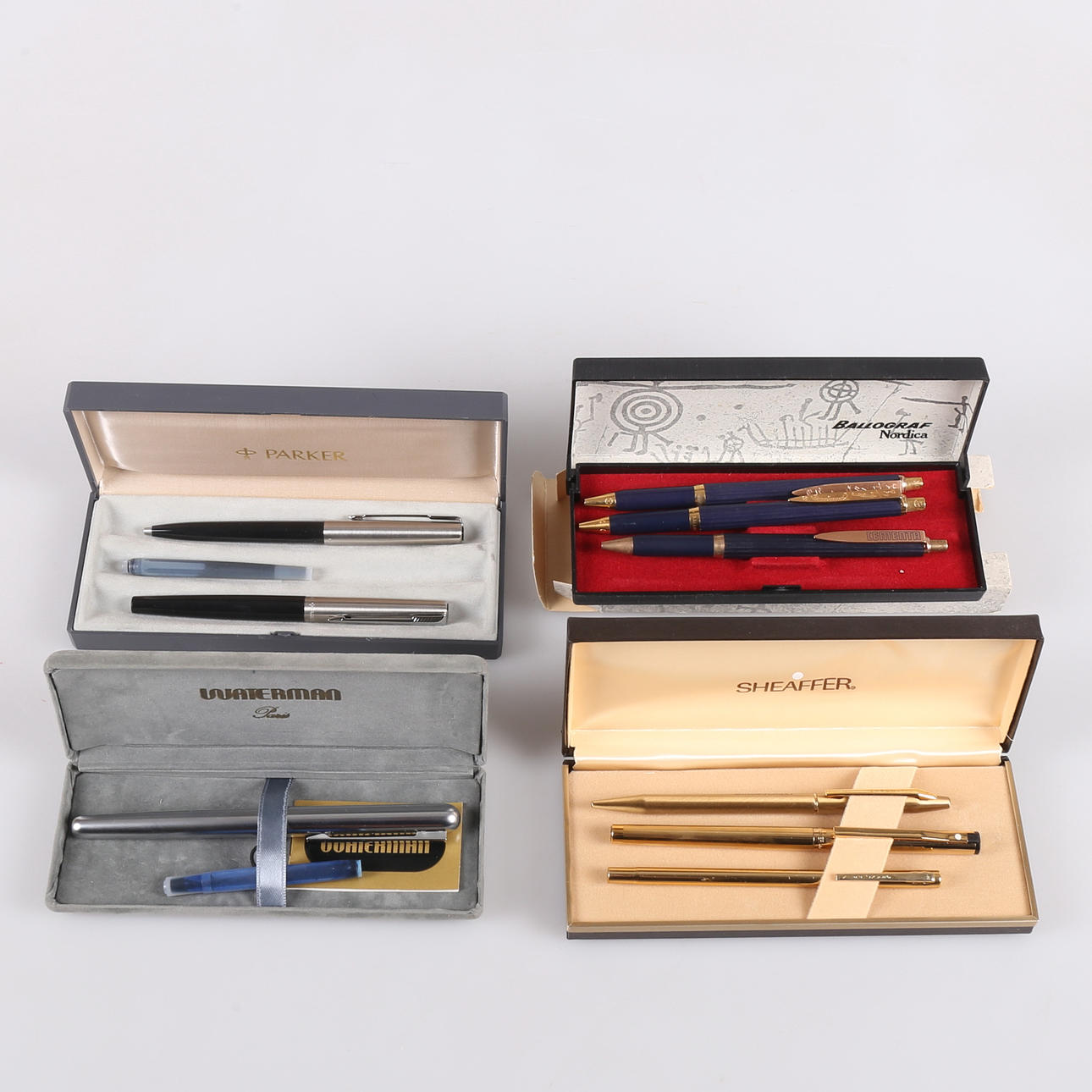 1 st. Waterman, 3 st. Ballografoch 1 st. Chromatic med reklamtryck Sandbolaget och Cementa.