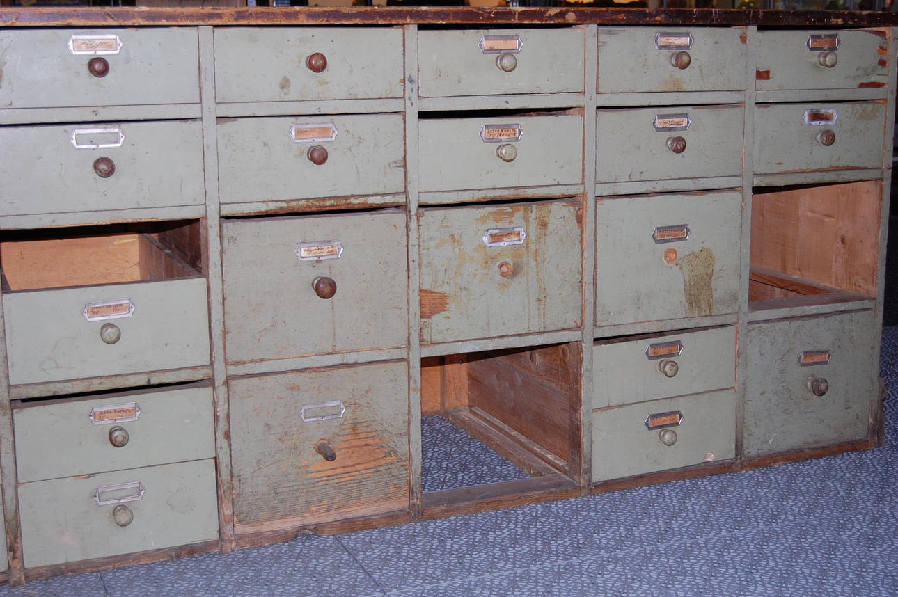 Med fint slitage och tillhörande pappershållare, kassalåda med klocka.