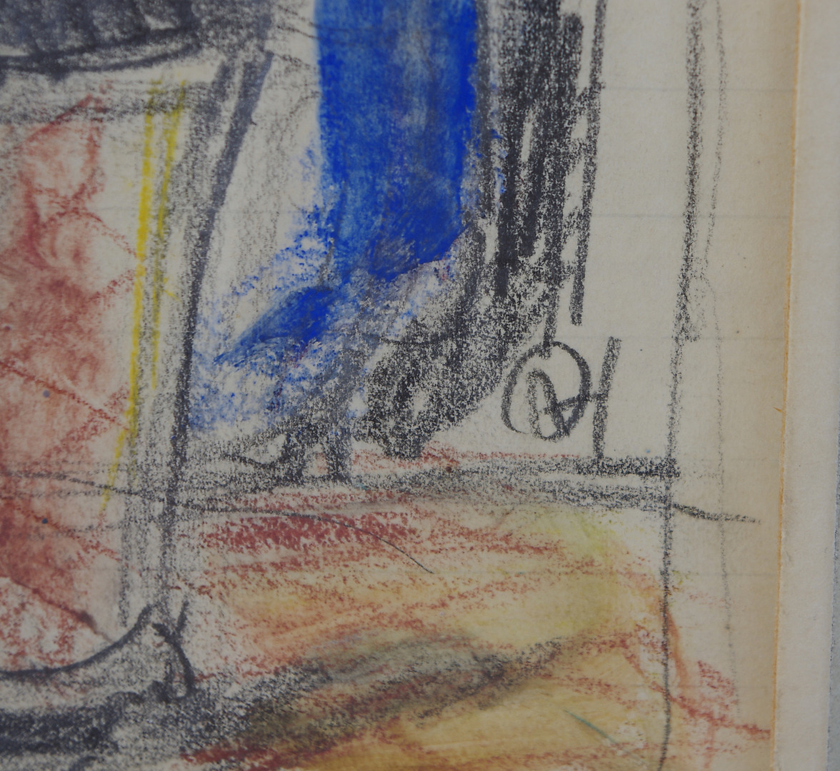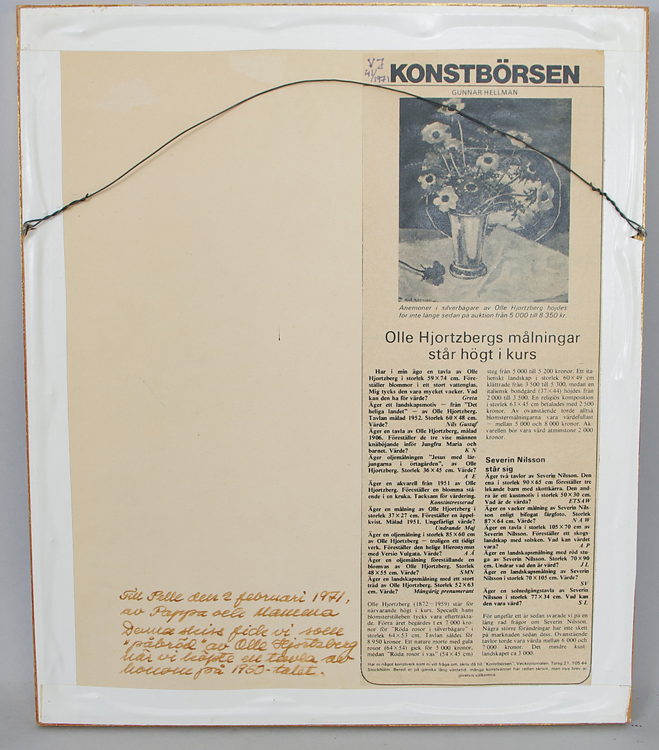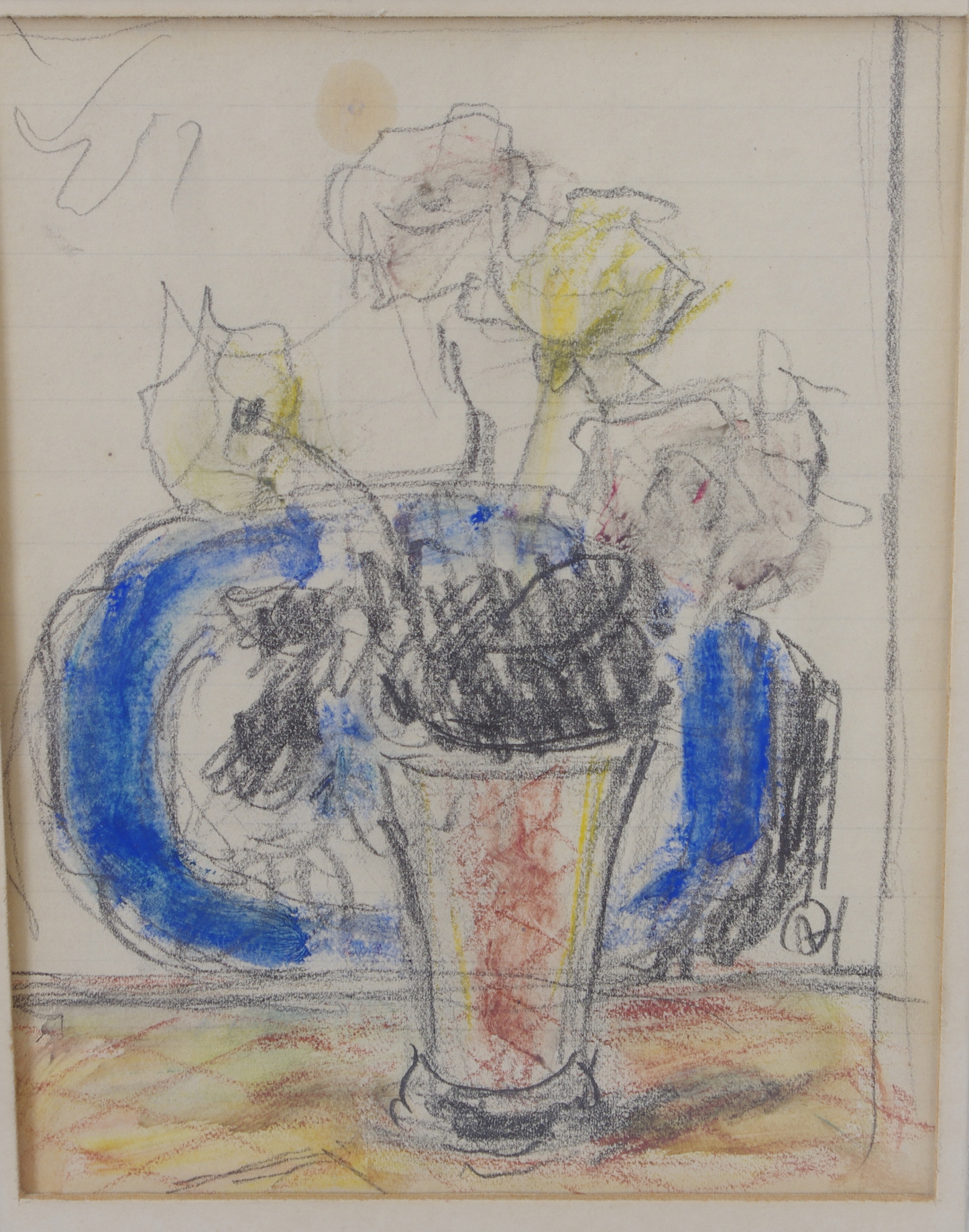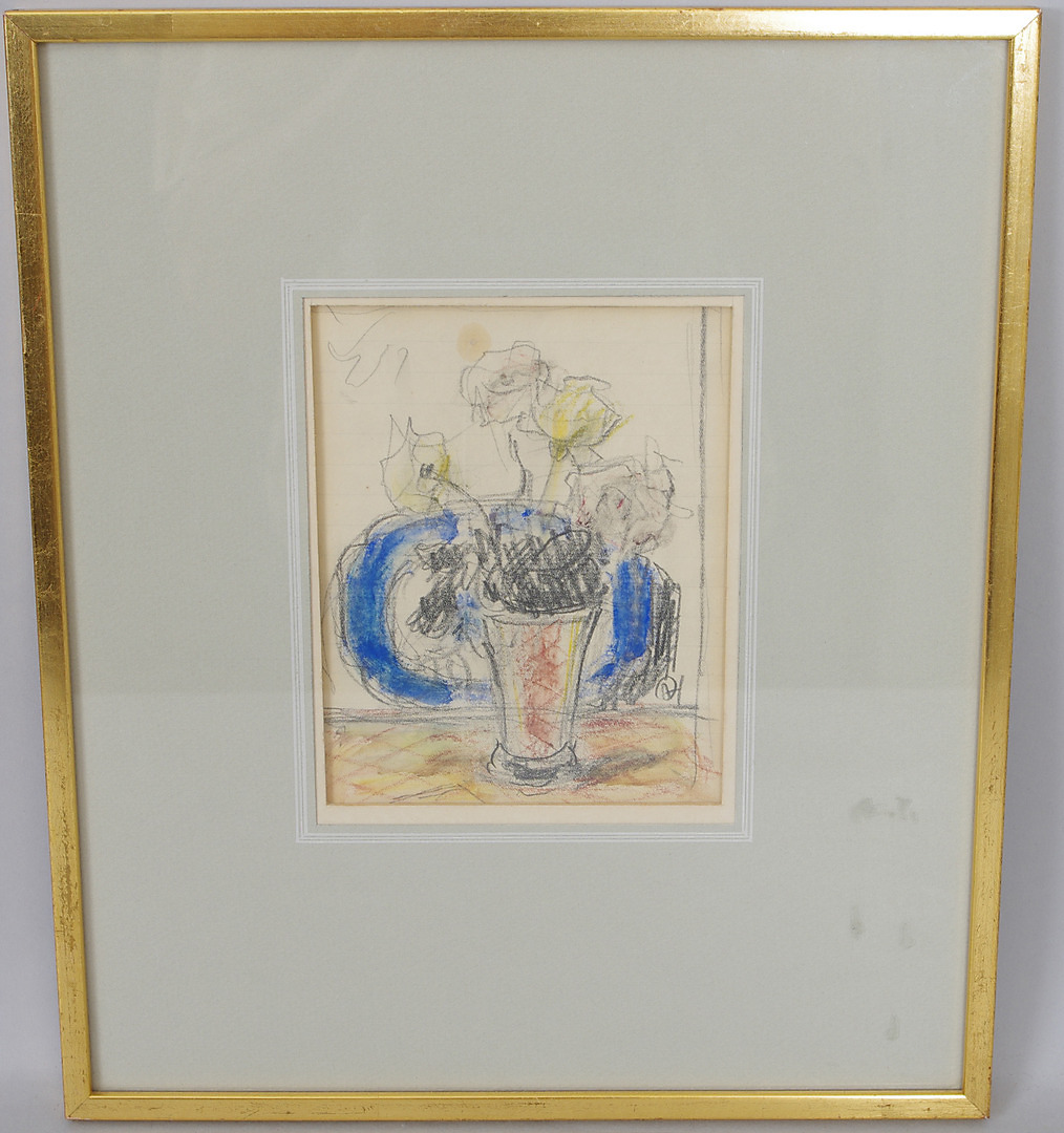 182963. OLLE HJORTZBERG. Blommor i vas, teckning, monogramsignerad OH.
