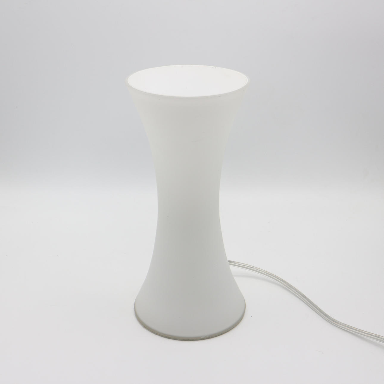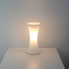 Vit designer bordslampa med varmt ljus.