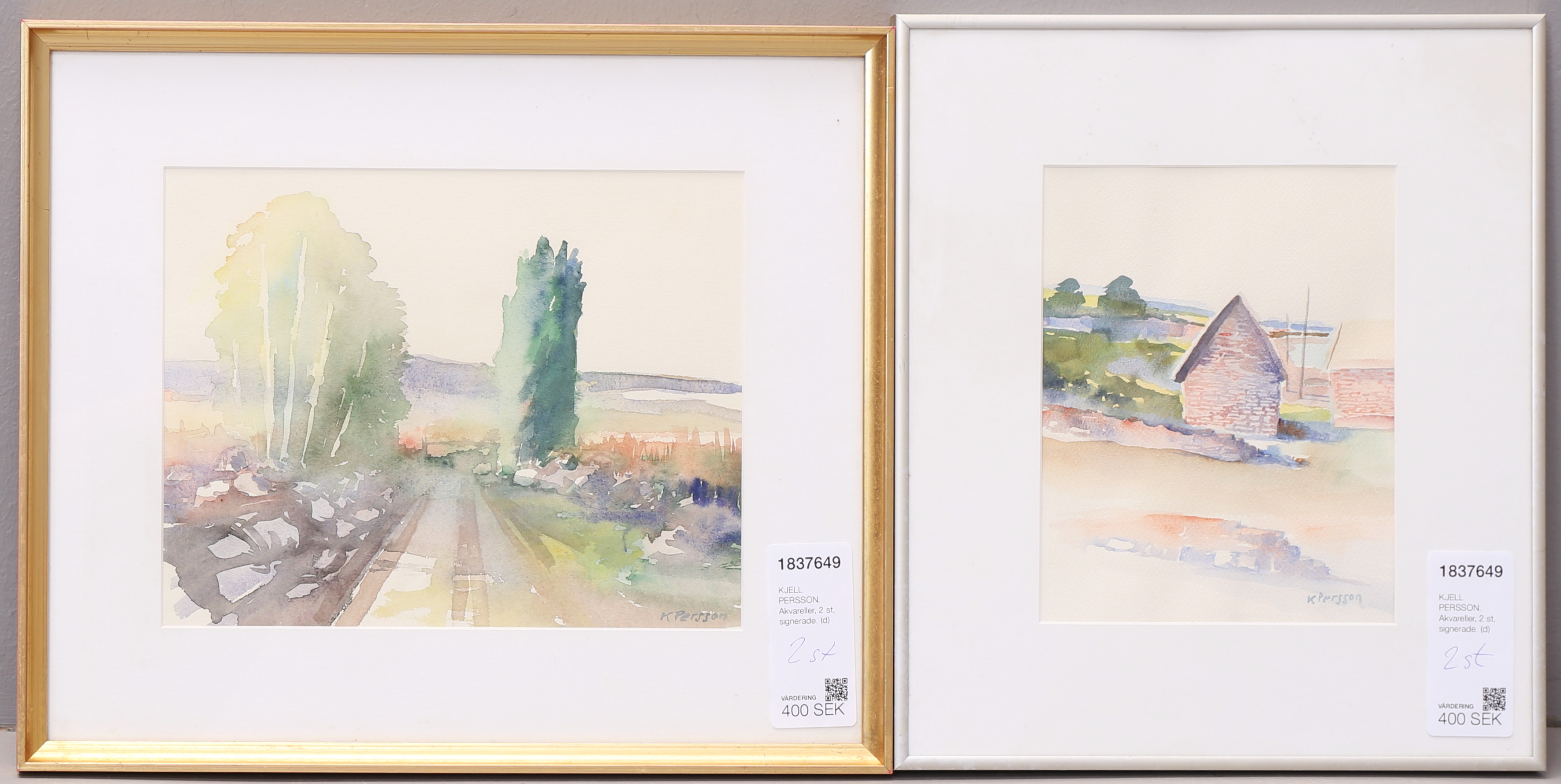 1837649. KJELL PERSSON. Akvareller, 2 st, signerade.