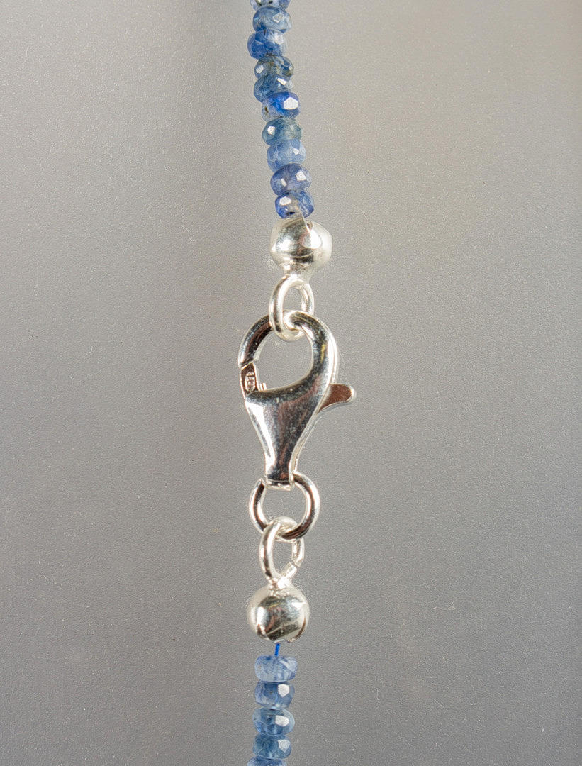 Halsband med fasettslipade safirrundor av Ø ca. 3 mm - 6 mm, med silver