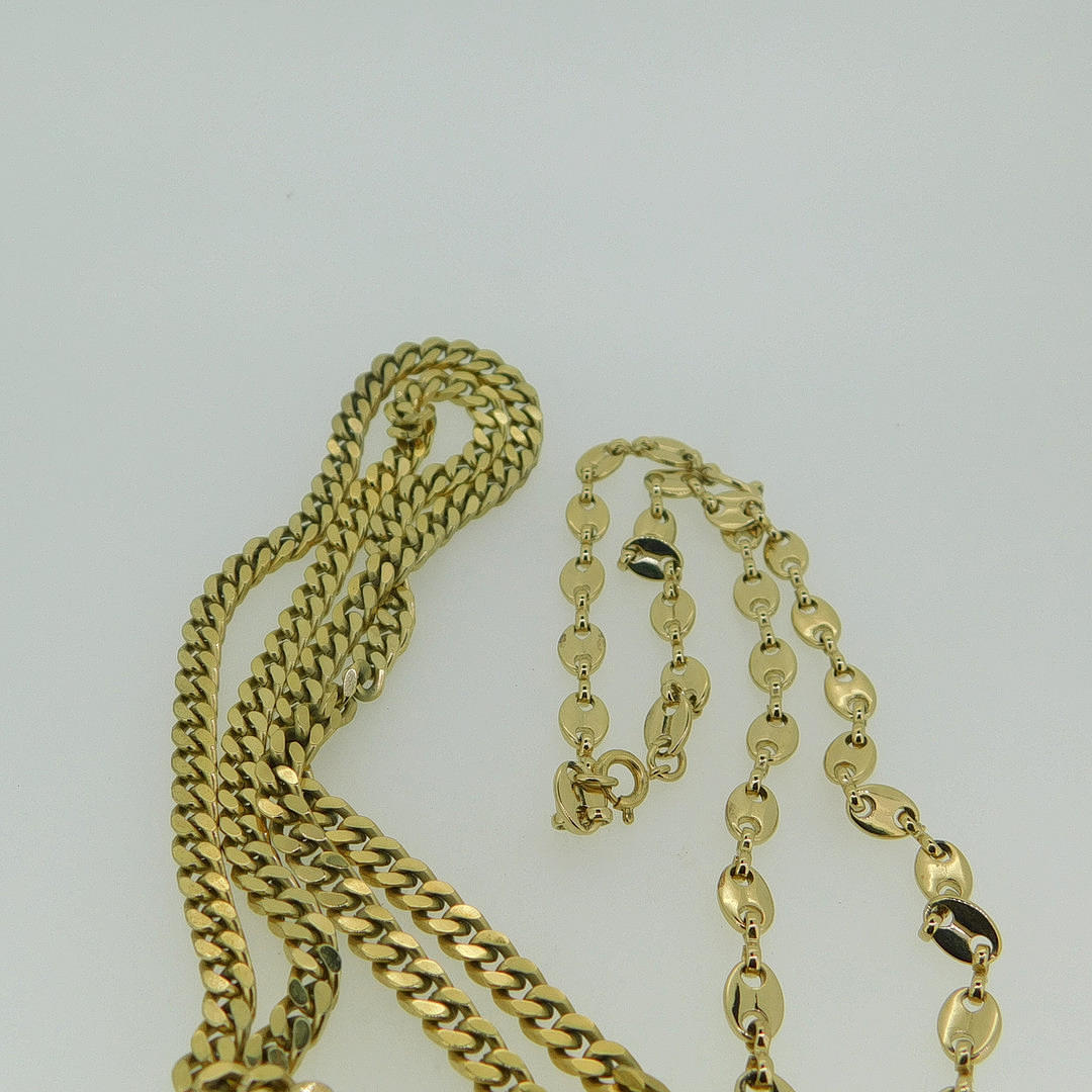 Den längsta kedjan är 24 ”(ca 61 cm) och är ett arkiverat curb länk halsband, den kortare kedjan är 17 ”(ca 43cm) och detta är en snygg capstan/häst bit länk halsband