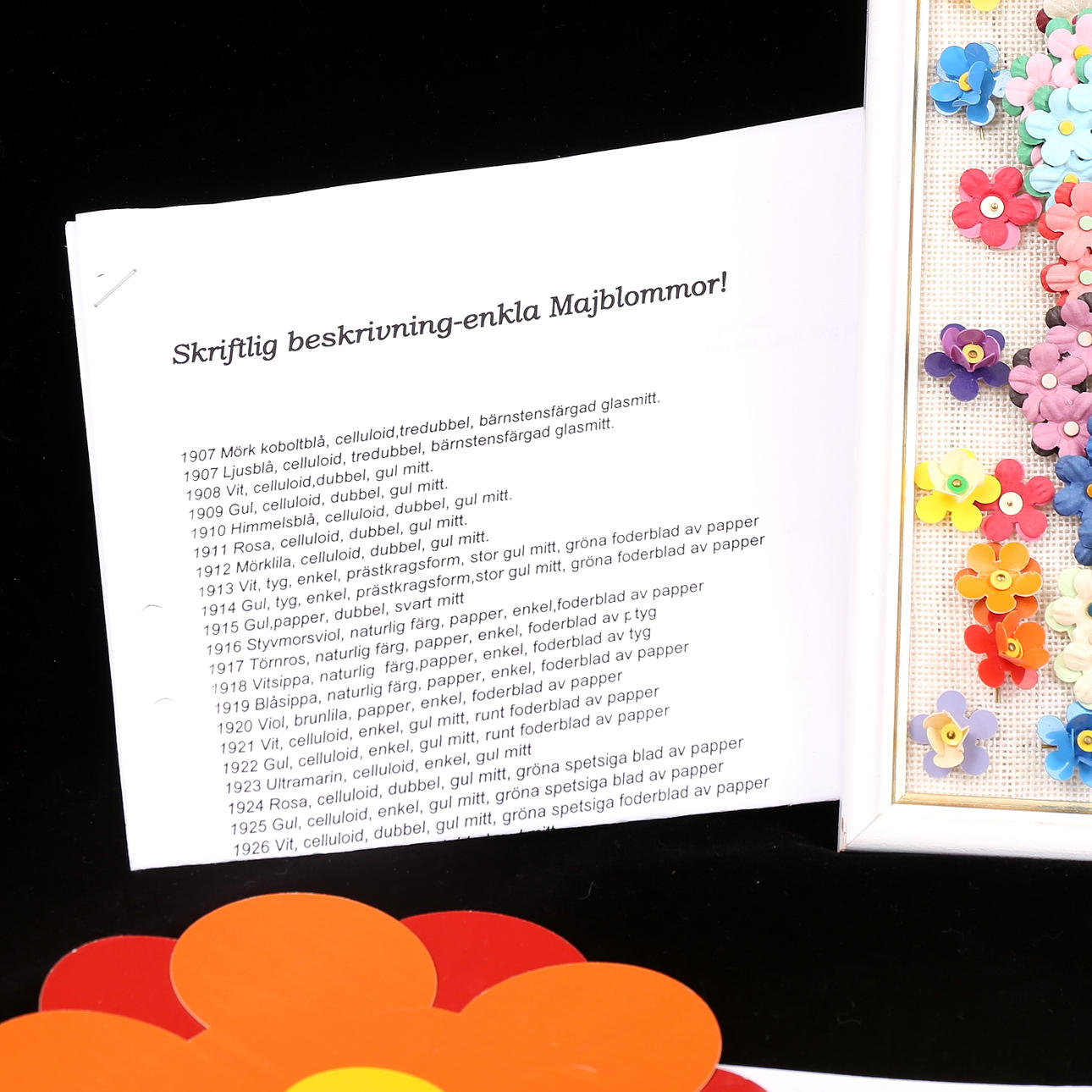 Kransar, enstaka, bilblommor. Enligt uppgift från 1908.