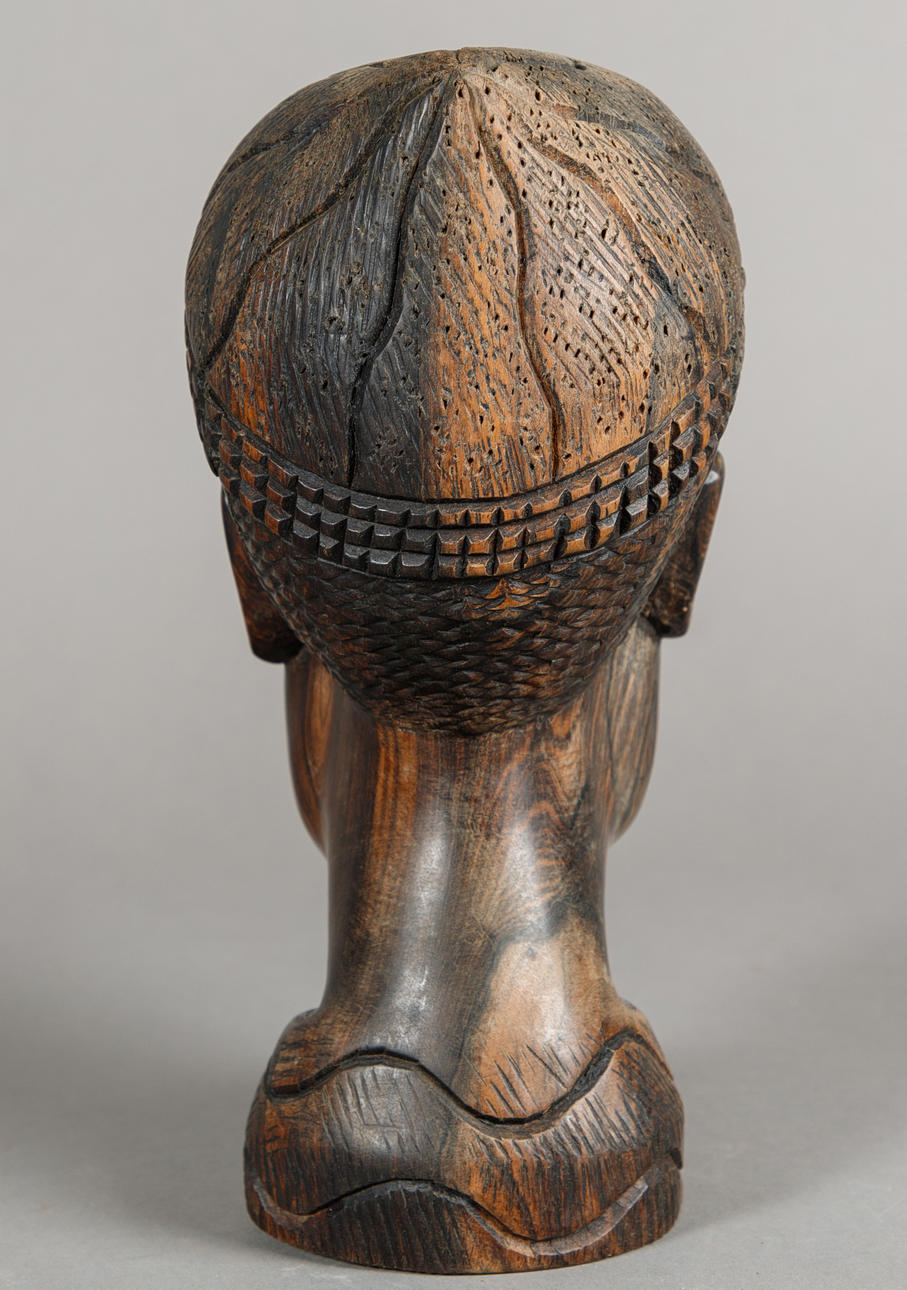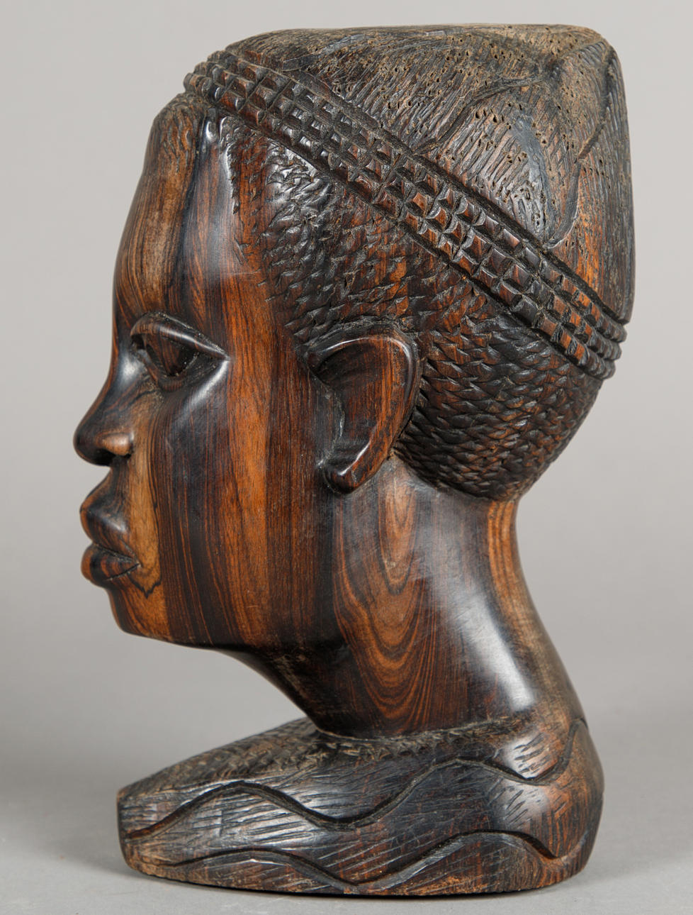 Manlig byst, snidade och graverade massivt trä, H.26cm Vikt: 2,7 kg.