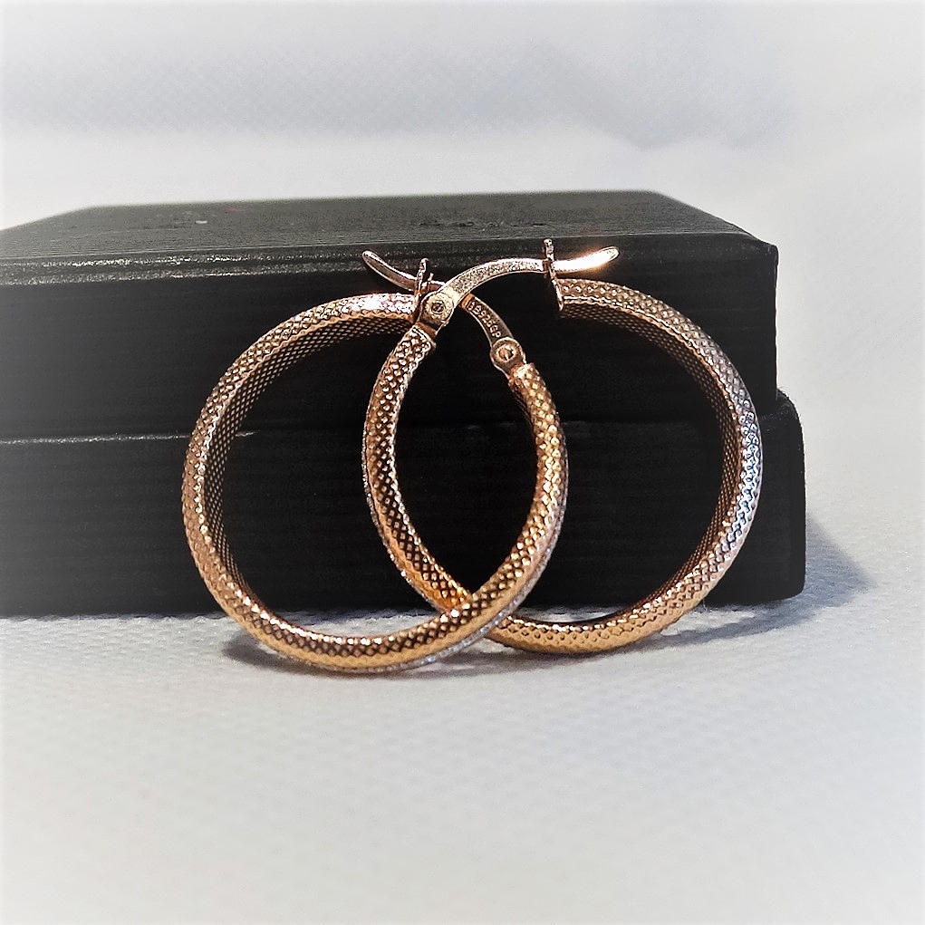 1842464. 925 rosa guldpläterade silver creoler med glänsande stenar.