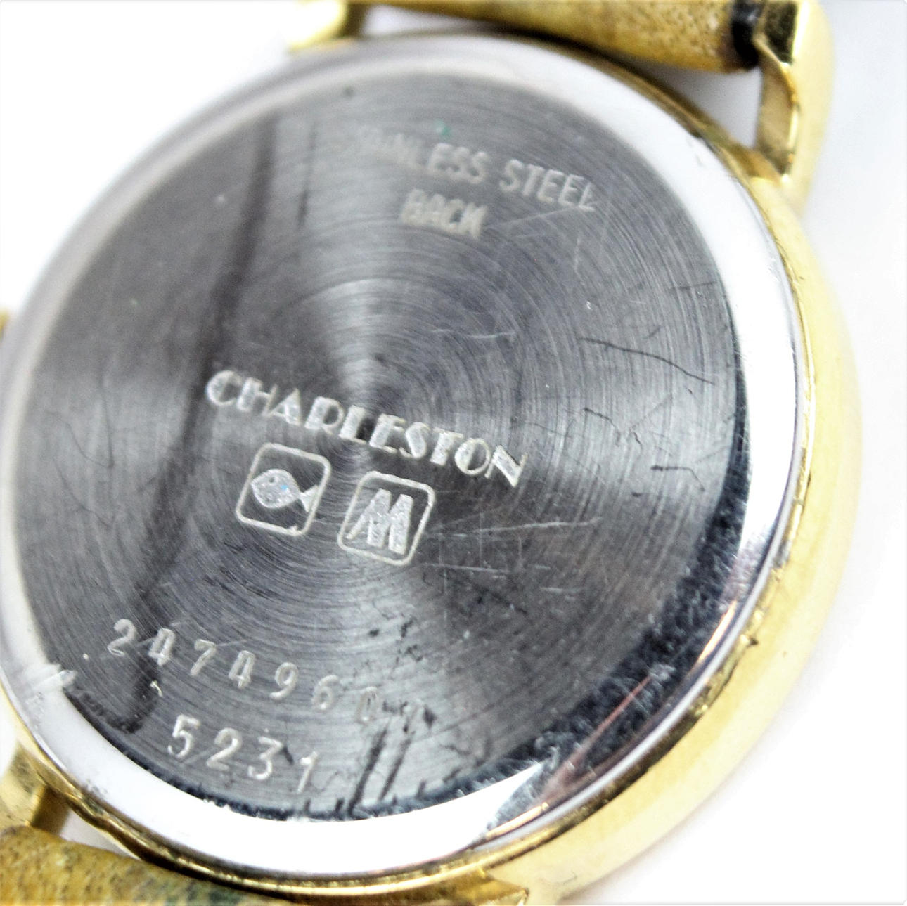 Förgyllt stål med läderband Quartz Ref nr 5231 Diameter 24 mm.