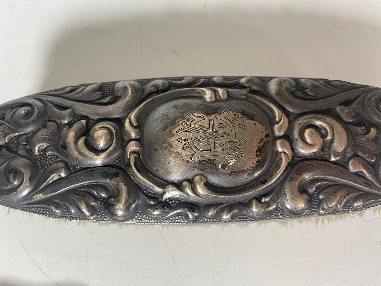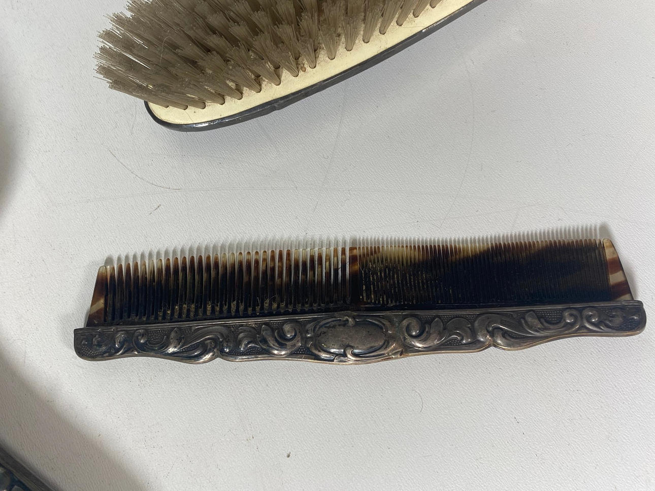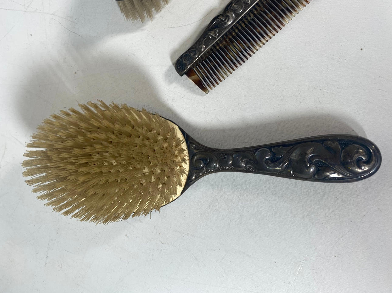 Silverpläterad frisörverksamhet set/borste set Den består av två borstar och en kam.