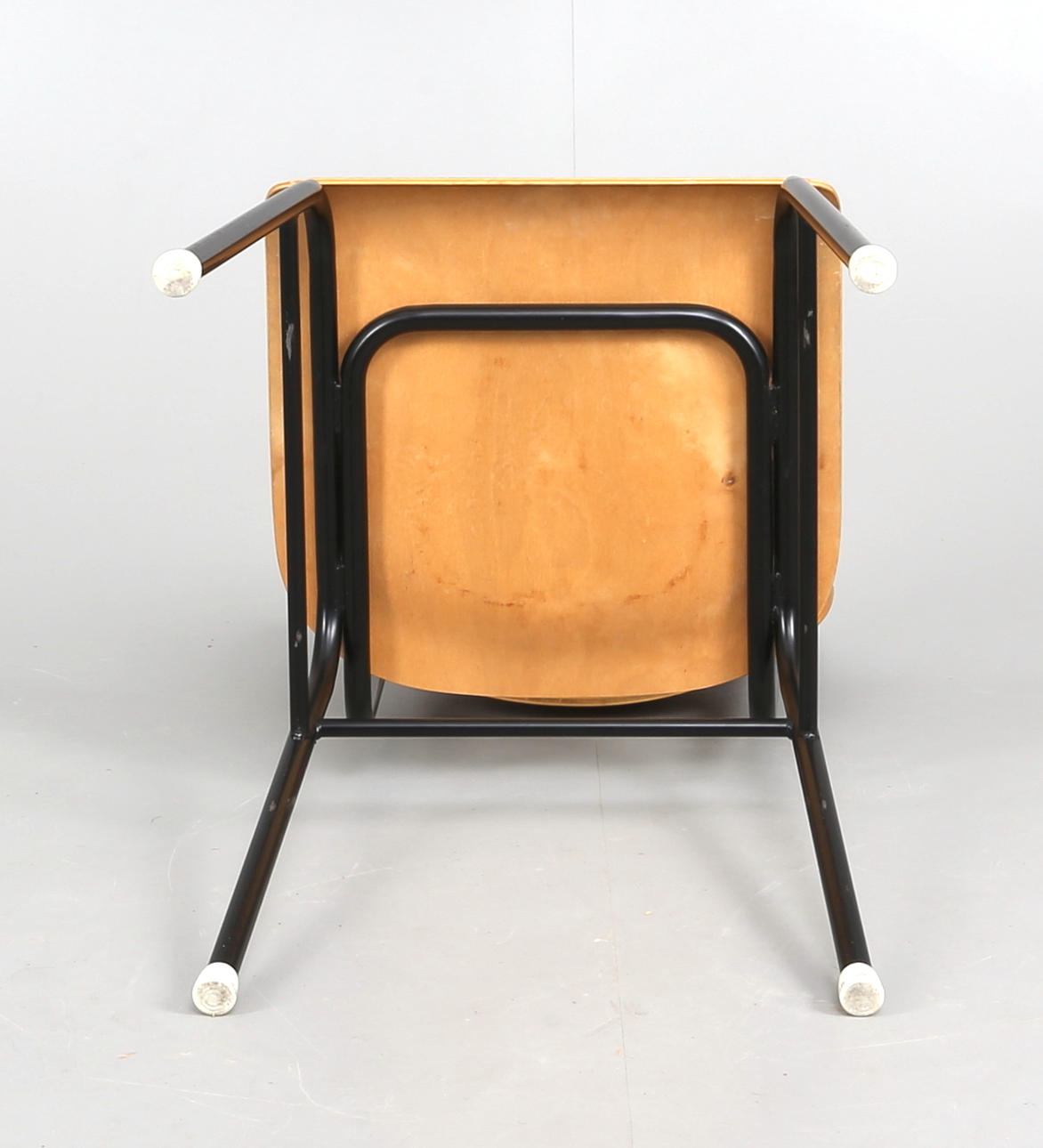 Stativ i metall med formpressad teaksits och rygg.