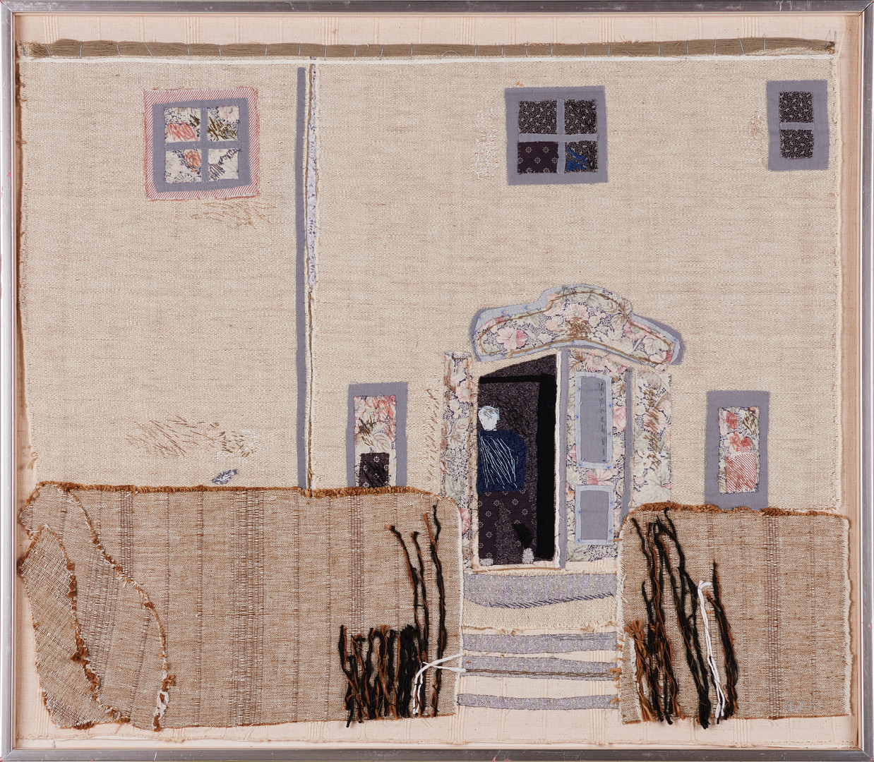 1845987. GUNILLA EKSTRÖMER FÜRST (FÖDD 1933). Dörrpost, assemblage, textil, signerad "GEF", 70/80-tal.