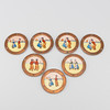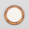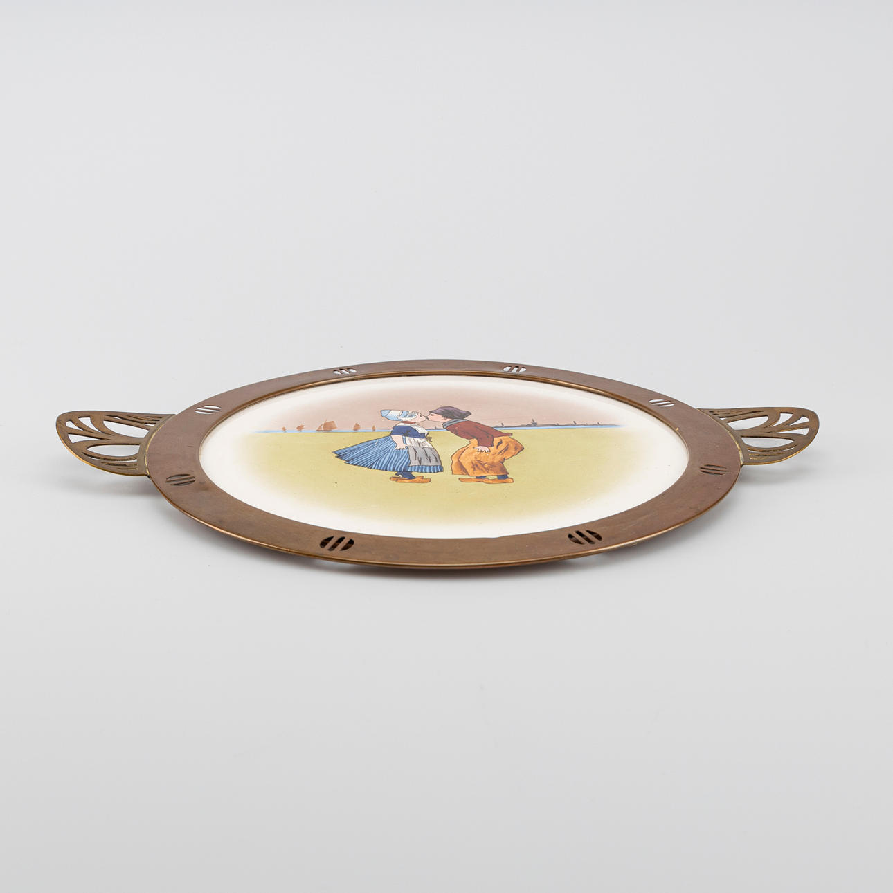 Koppar och porslin, brickans diameter 36 cm, glasunderlägg 6 st diameter 10,5 cm.