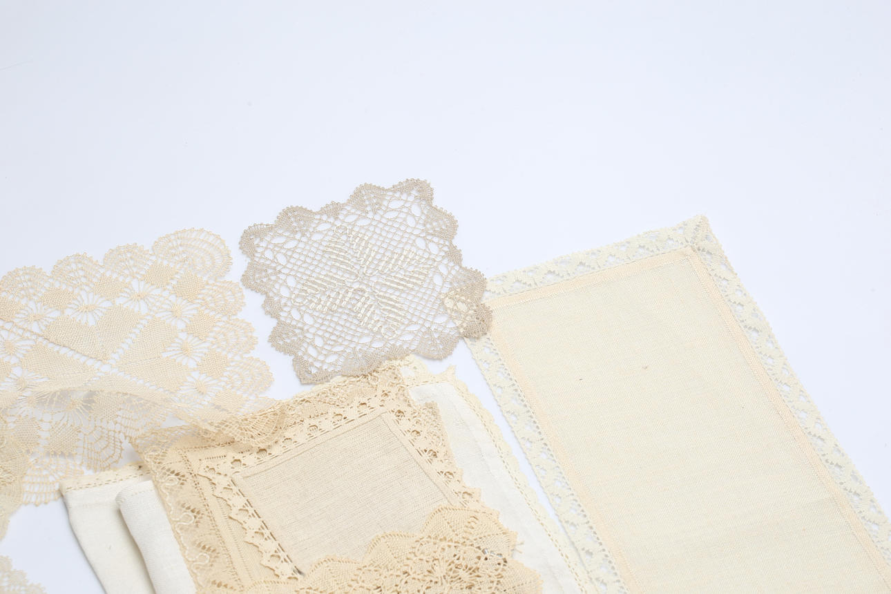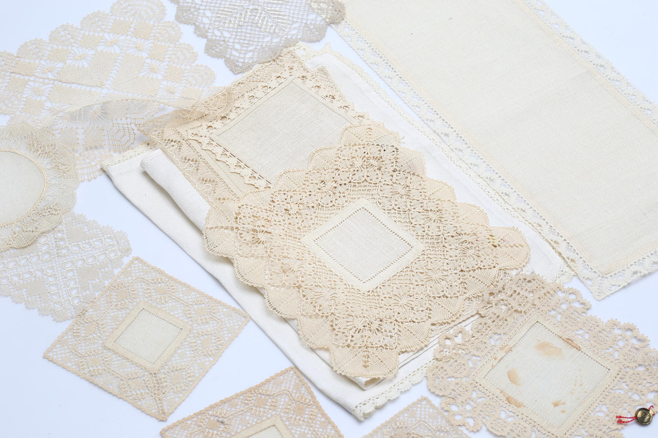1854793. DUKAR, 16 st, bland annat knypplade.