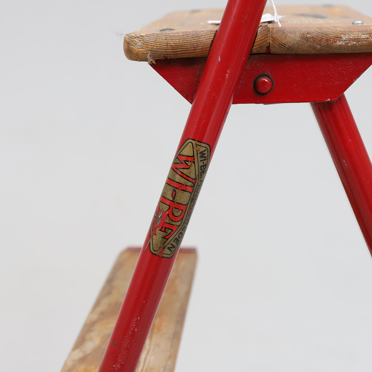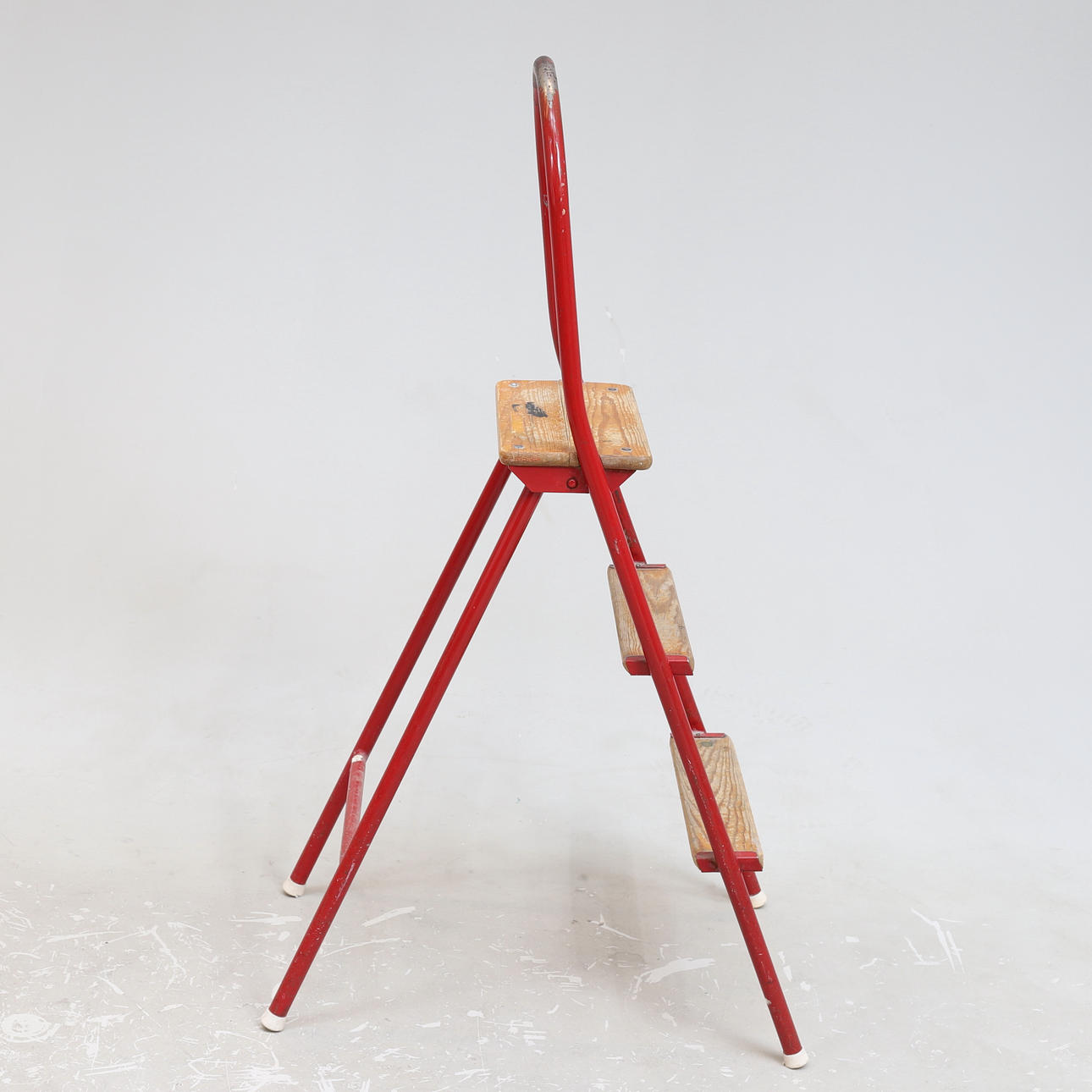 Stomme av metall. Trappsteg av furu. Hopfällbar. Etikettmärkt. Höjd 115 cm.