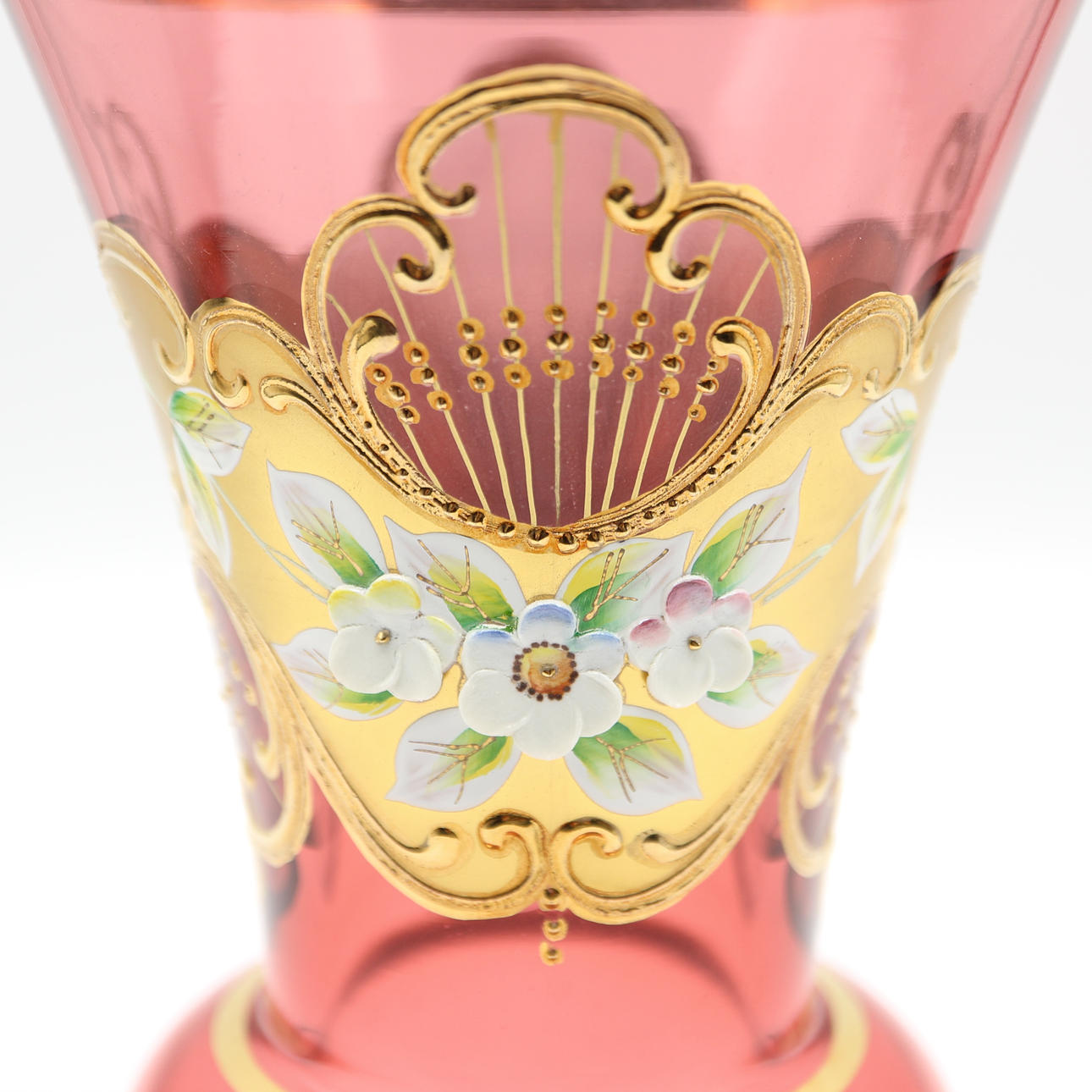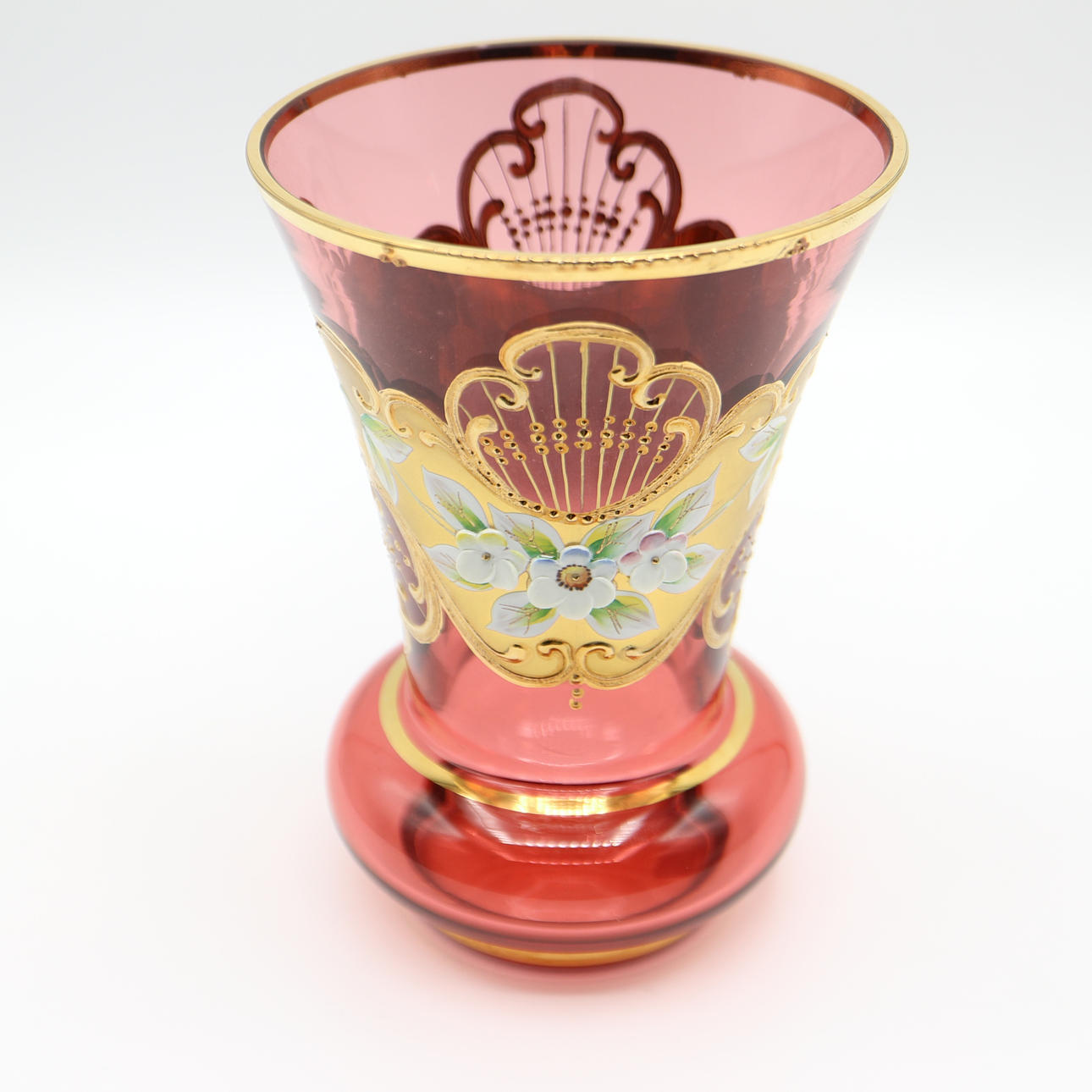 BOHEMISKT GLAS MUGG MED EMEIL MÅLNING.