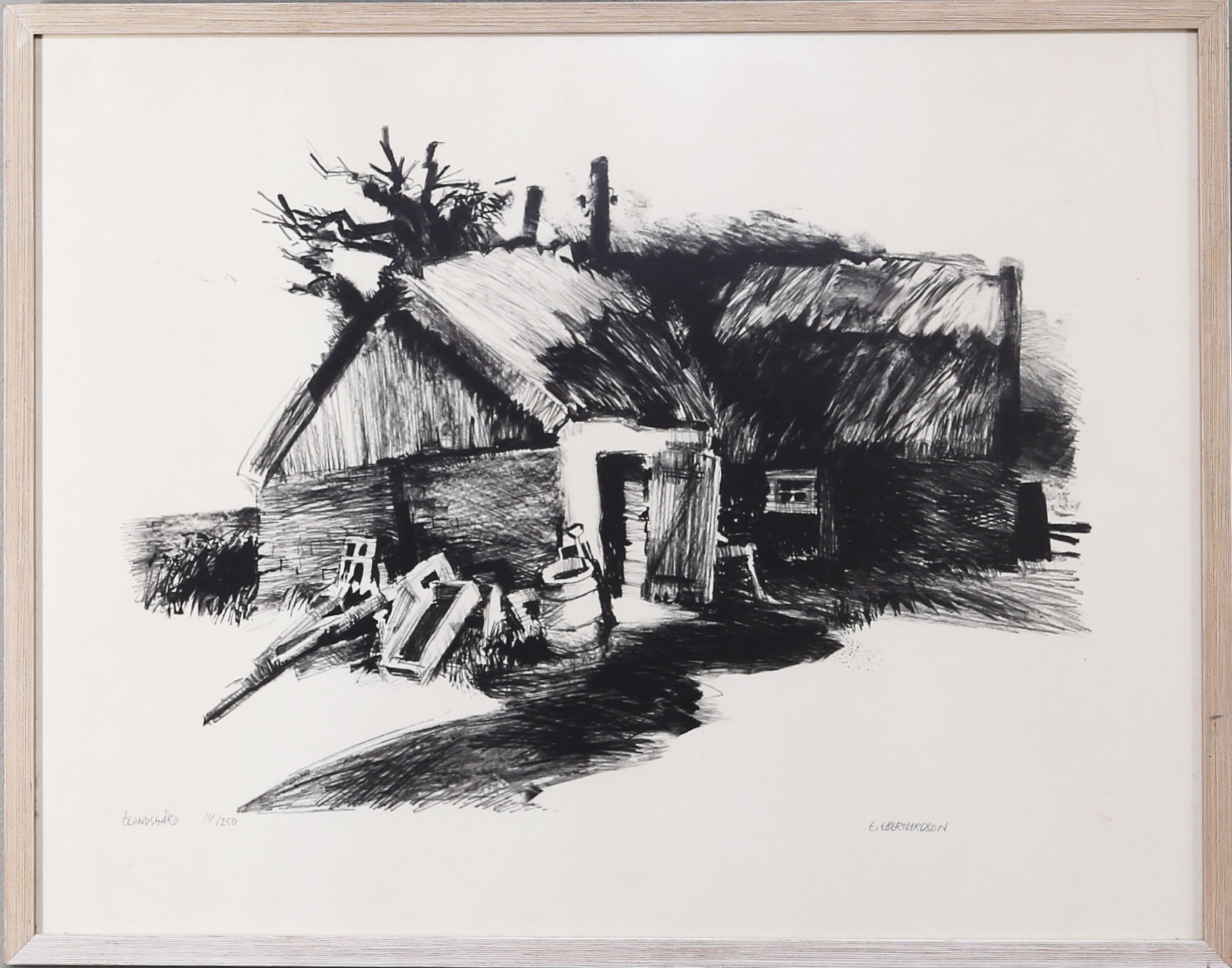 186290. EBBE EBERHARDSON. "Ölandsgård", litografi, signerad E.Eberhardson.