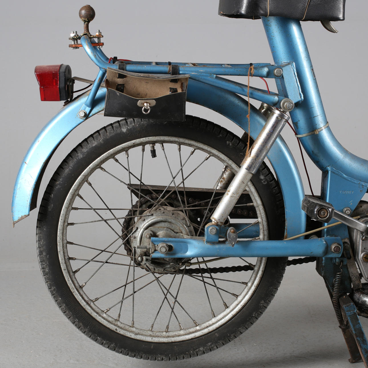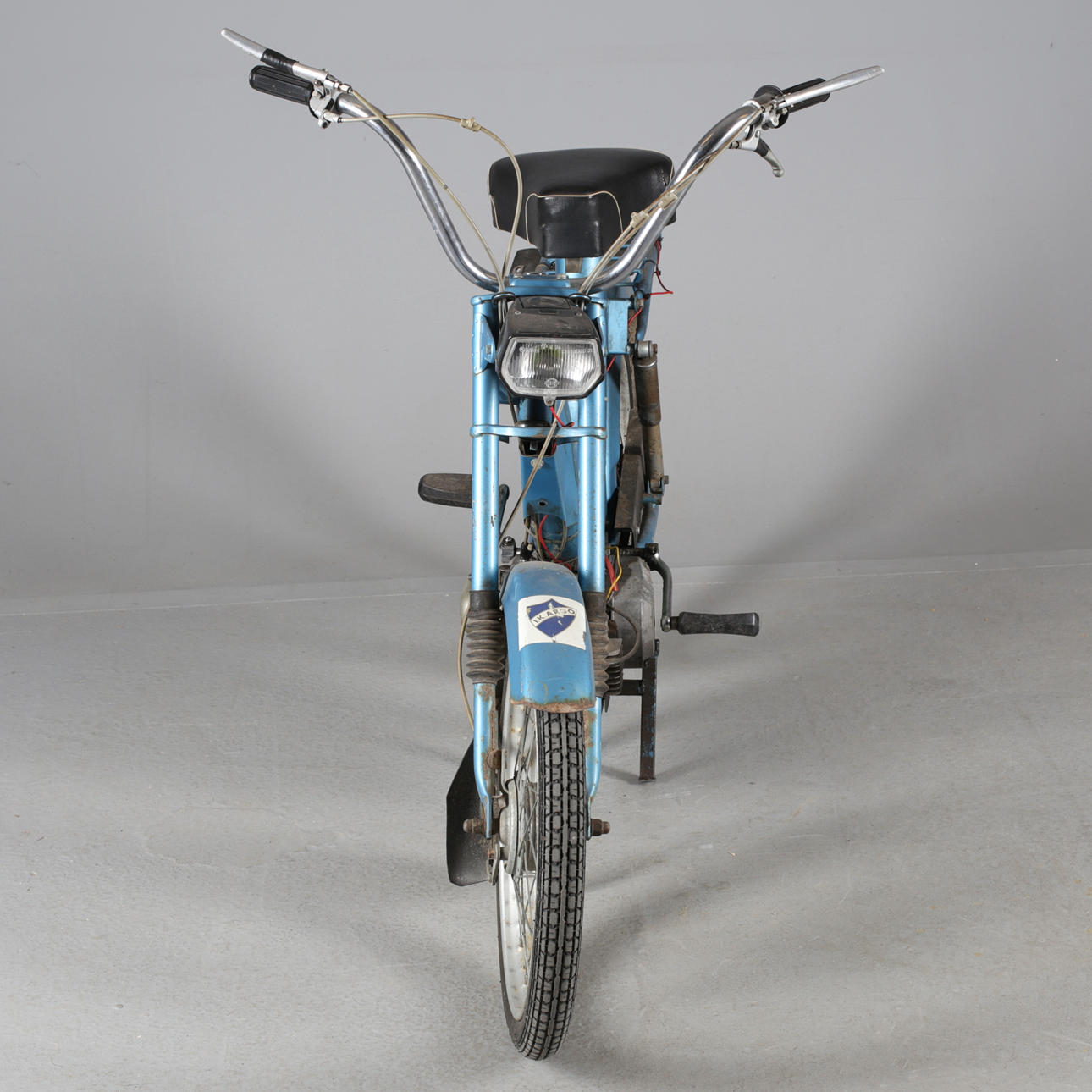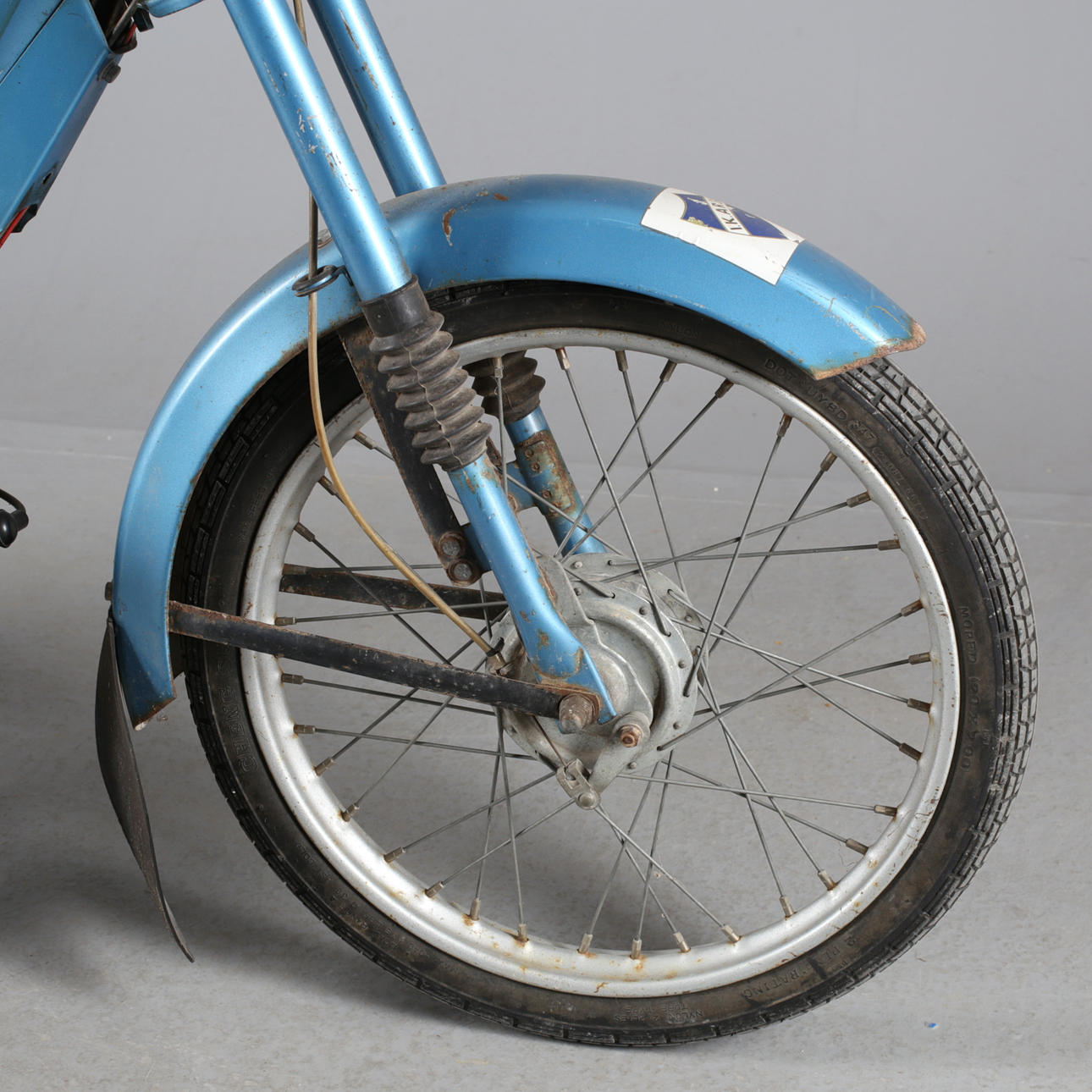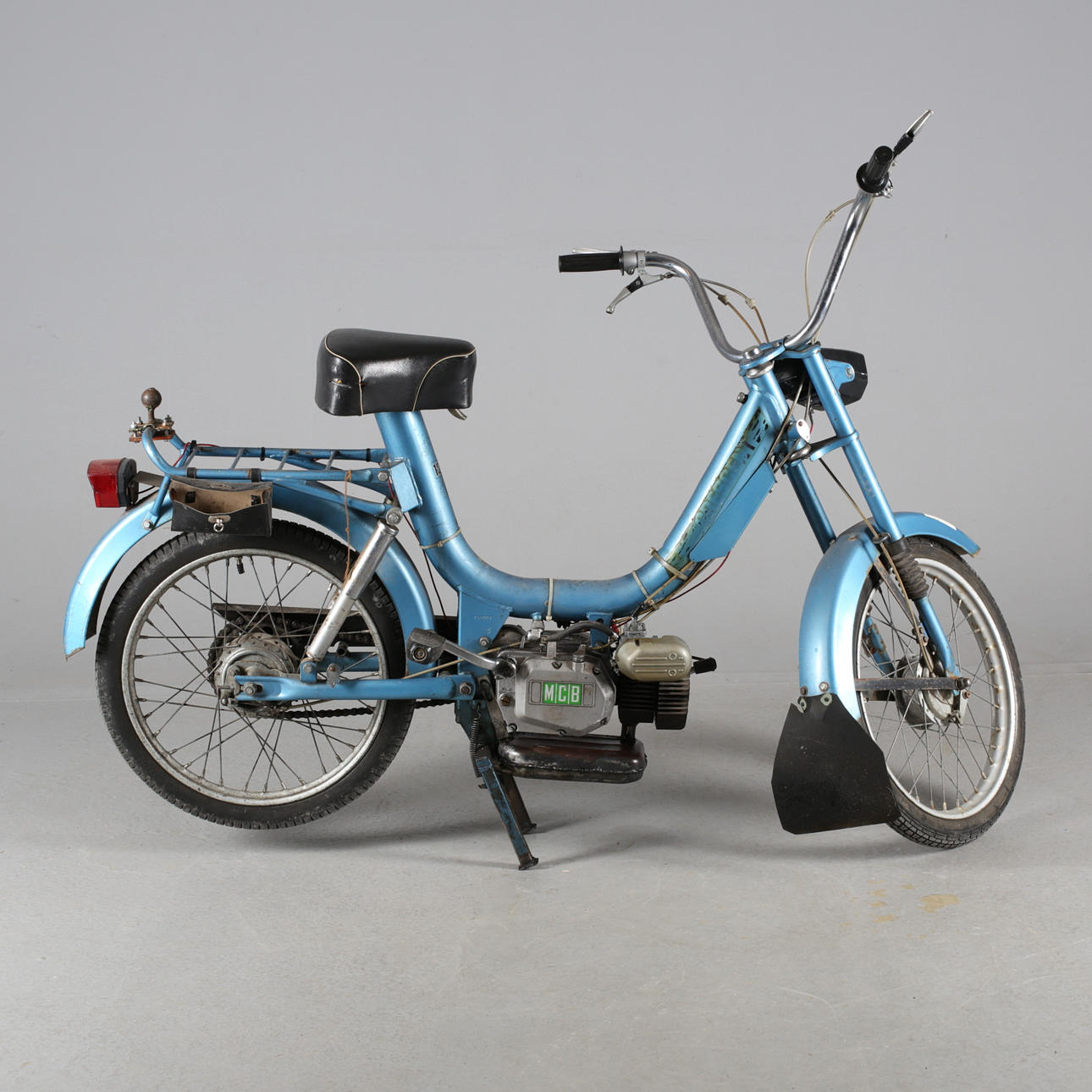 Sveriges populäraste moped, Compacten, med automatkopplad motor & pedalstart. Lackade fälgar & skärmar. Teleskopgaffel fram & Swingaffel bak. Centralstöd för enkel pedalstart. Motorn är en Morini Franco Gyromat MO Automatväxlad. Däckdimension 2.00-16″